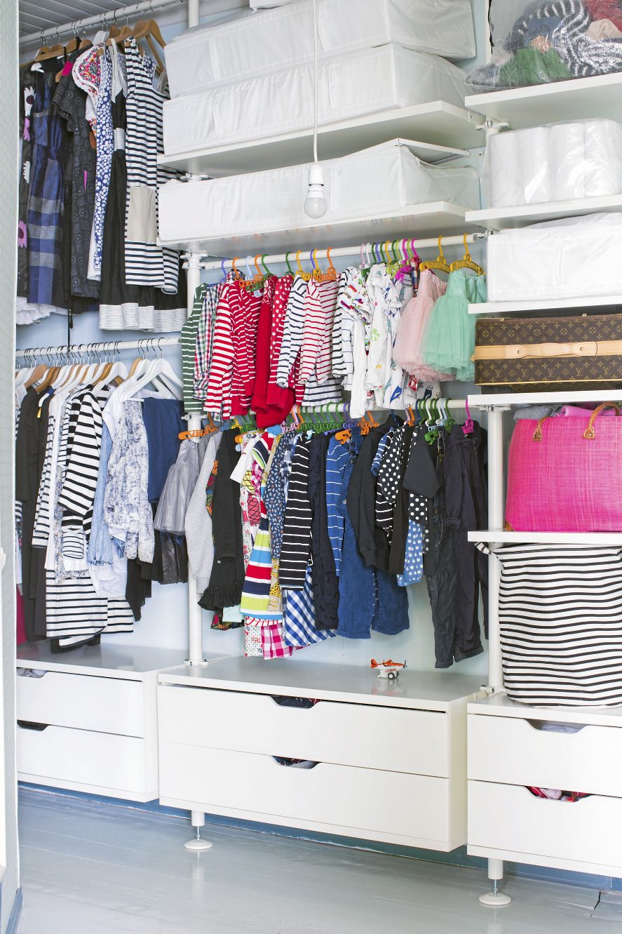 Kuva: Päivi Anita RistellVaatehuone kannattaa suunnitella niin, että tila tulee käytettyä mahdollisimman tiiviisti lattiasta kattoon ja seinästä seinään. Hanki muunneltava säilytysjärjestelmä tai räätälöi hyllyt ja tangot juuri omaan tilaasi sopiviksi, niin saat kaikki sentit käyttöön.
