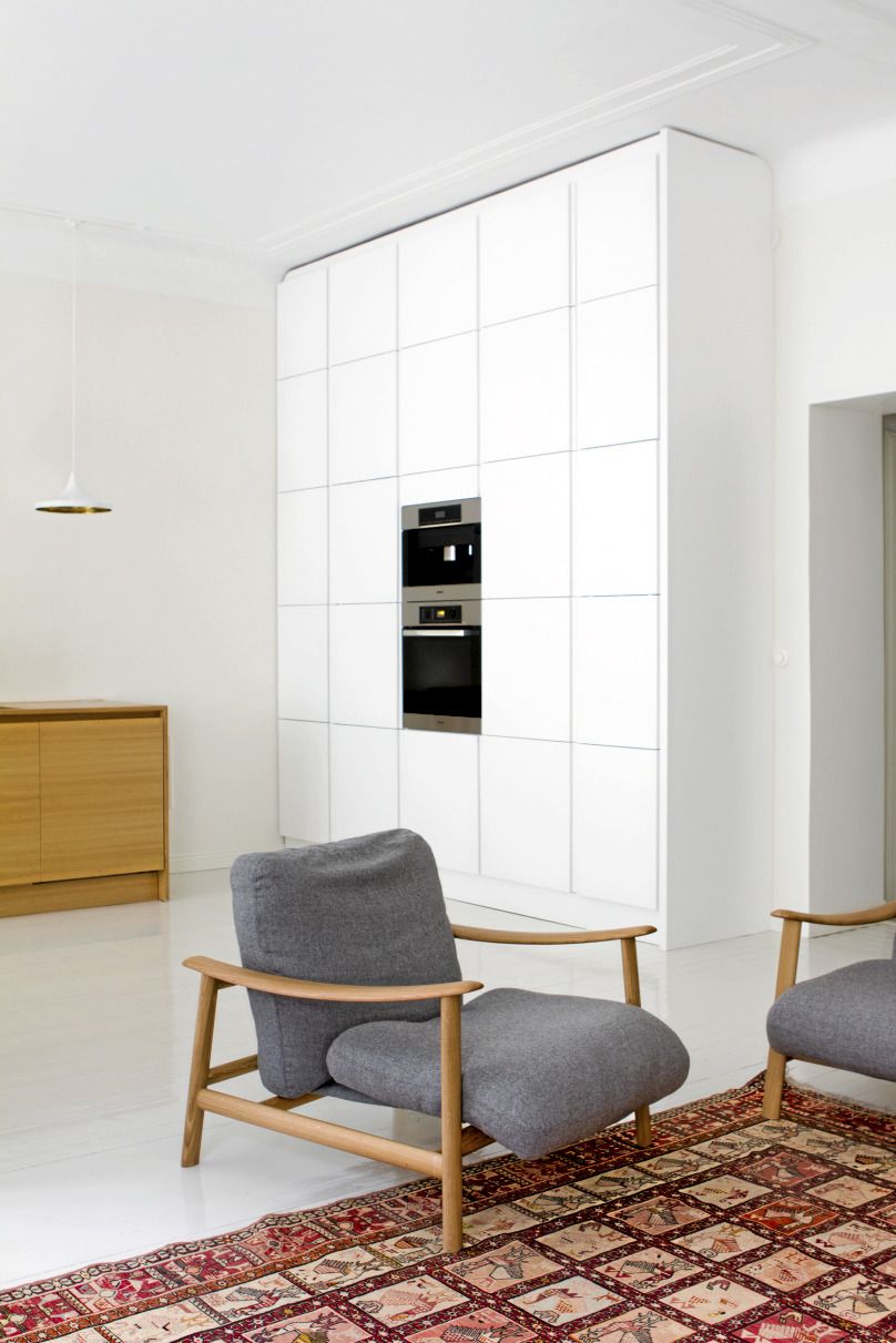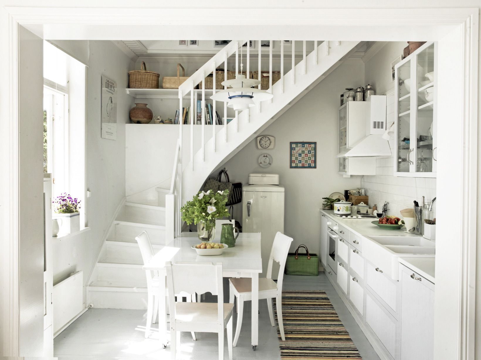 Kuva: Jouni HaralaMonesti käytävämäiset tilat jäävät hukkatiloiksi. Yhdelle seinälle sijoitettu keittiö mahtuu hyvin pitkään ja kapeahkoon huoneeseen. Portaikon seinän voi käyttää säilytystilana kiinnittämällä seinälle hyllyjä esimerkiksi kirjoja varten.