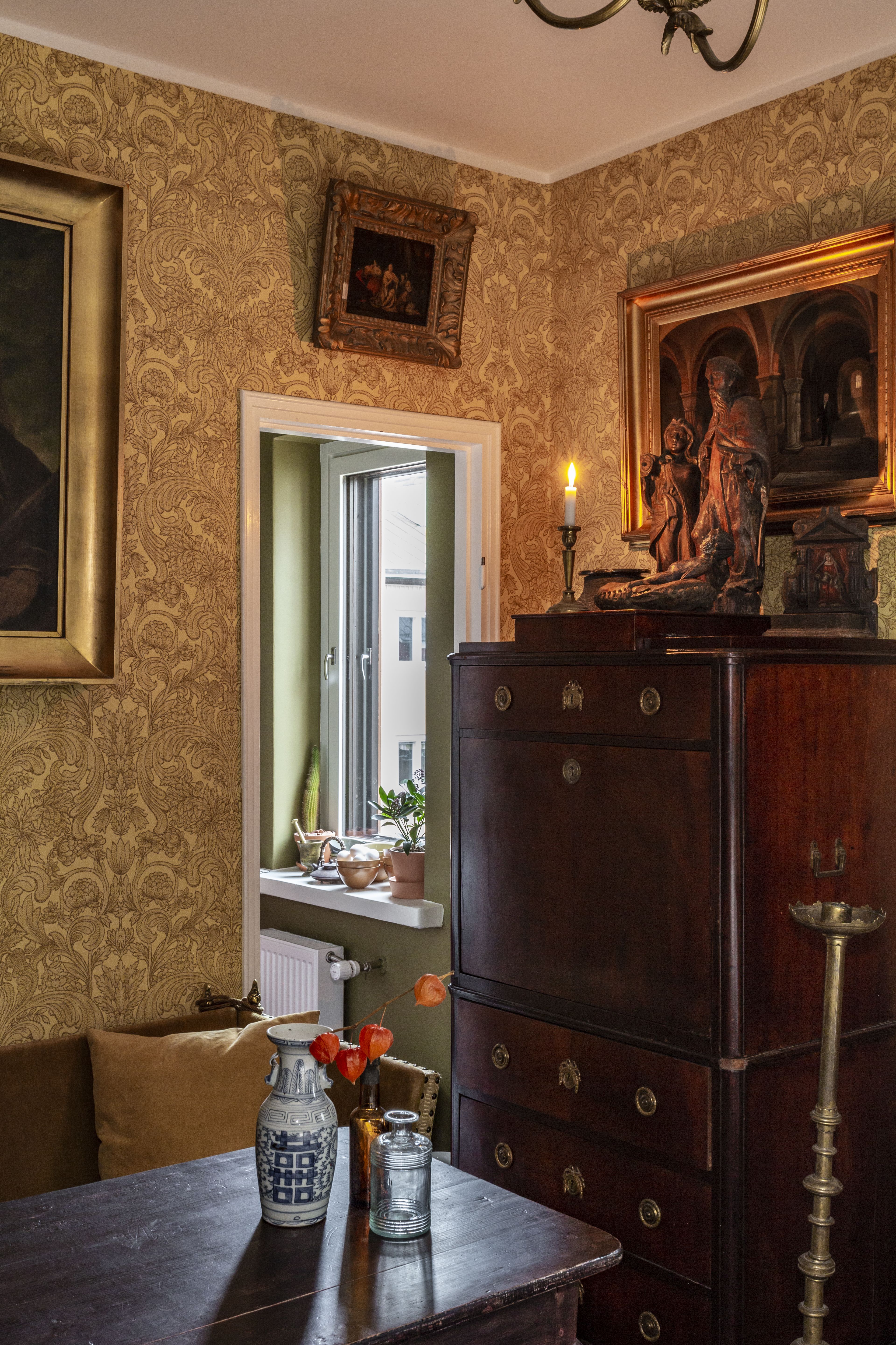 – Pidän hämäryydestä. 1900-luvun alussa asunnot olivat pieniä, tummia ja hämäriä ja niissä oli raskaita verhoja pitämässä tilan lämpimänä.