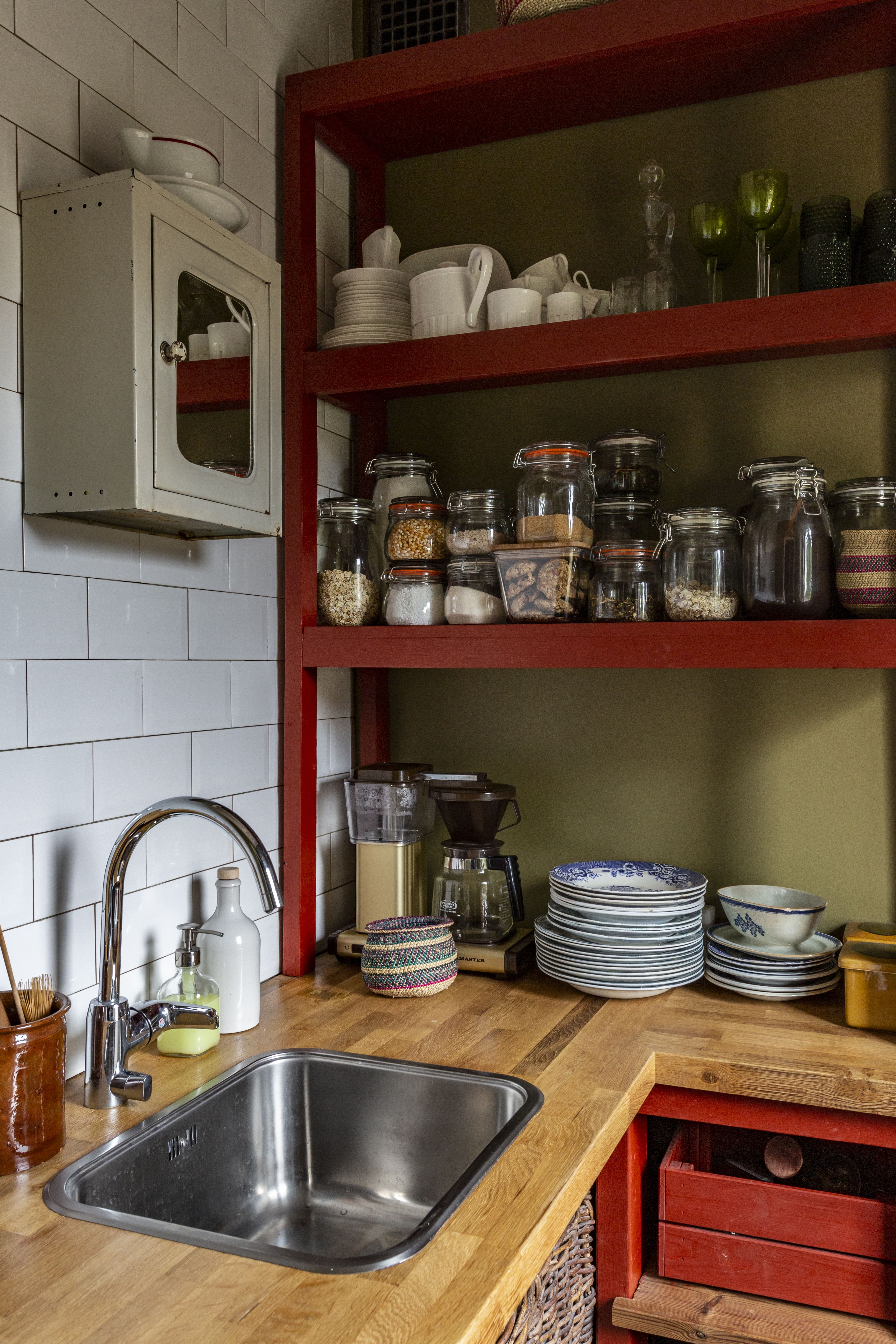 Asunto oli remontoitu myyntikuntoon. Valkoiset seinät, neutraali tammiparketti ja valkoinen Ikea-keittiö eivät kuitenkaan olleet tämän ostajapariskunnan haaveiden täyttymys - ennemminkin pahin painajainen. Mahtava alue, puutarhamainen piha ja talossa aiemmin vuokralla vietetyt vuodet tekivät ostopäätöksestä kuitenkin helpon. Remontissa kaikki pinnat muutettiin, parkettien alta kaivettiin esiin vanha lautalattia ja valkoinen keittiö sai kyytiä.