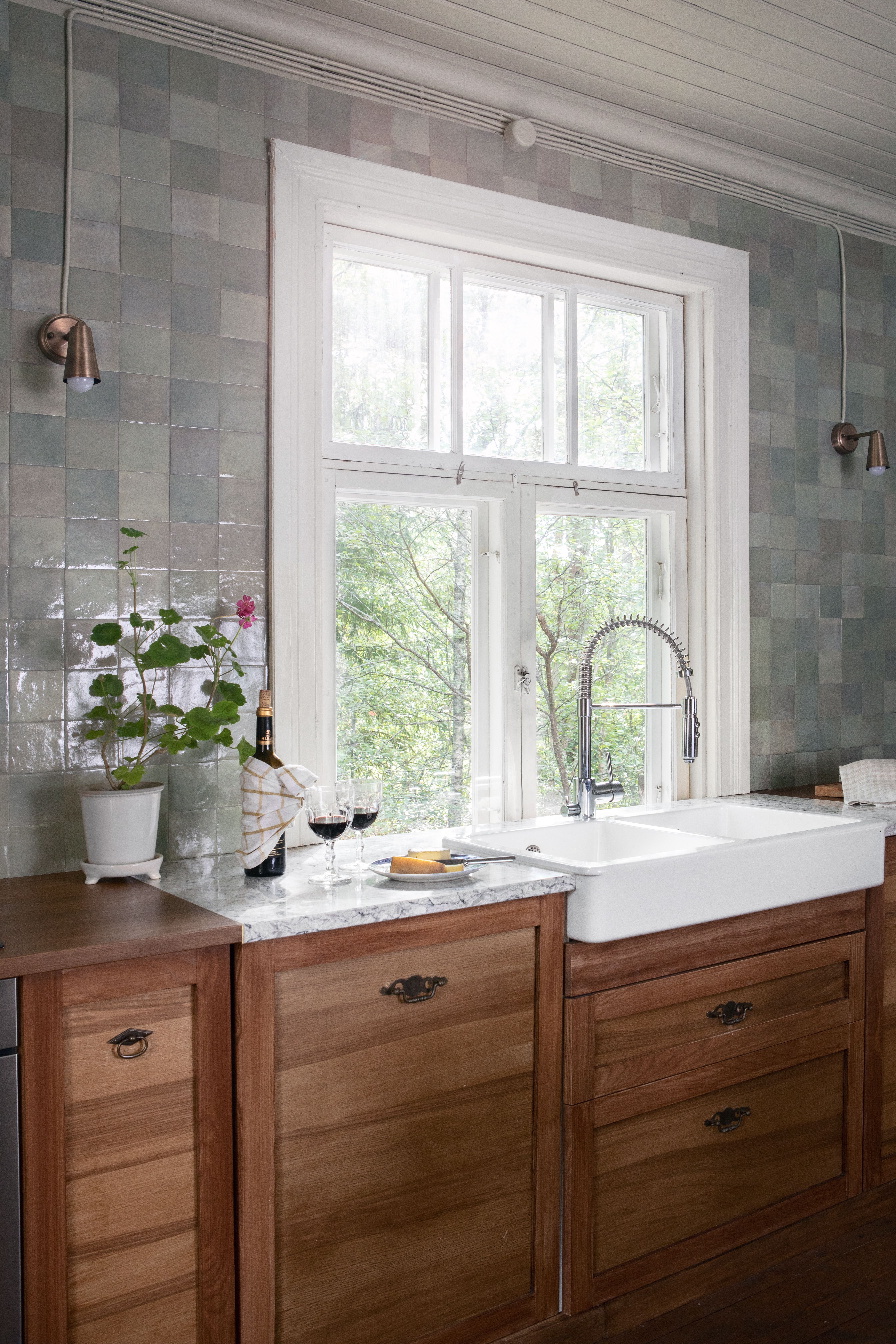 –Inspiraationa olivat vanhat, kokonaan kaakeloidut keittiöt. Selkeä 10 x 10 cm -laatoitus tuntui sopivalta vanhaan taloon.