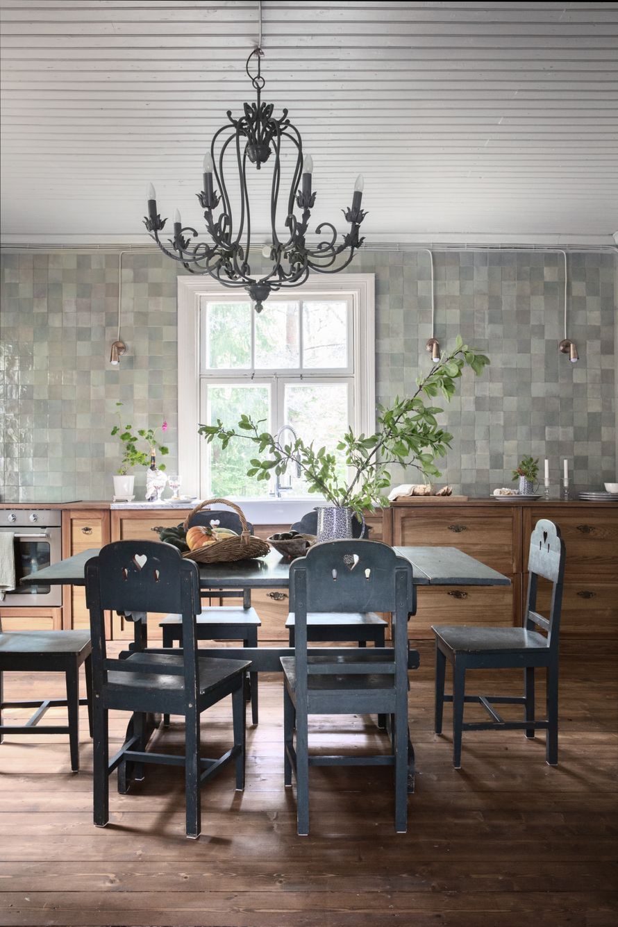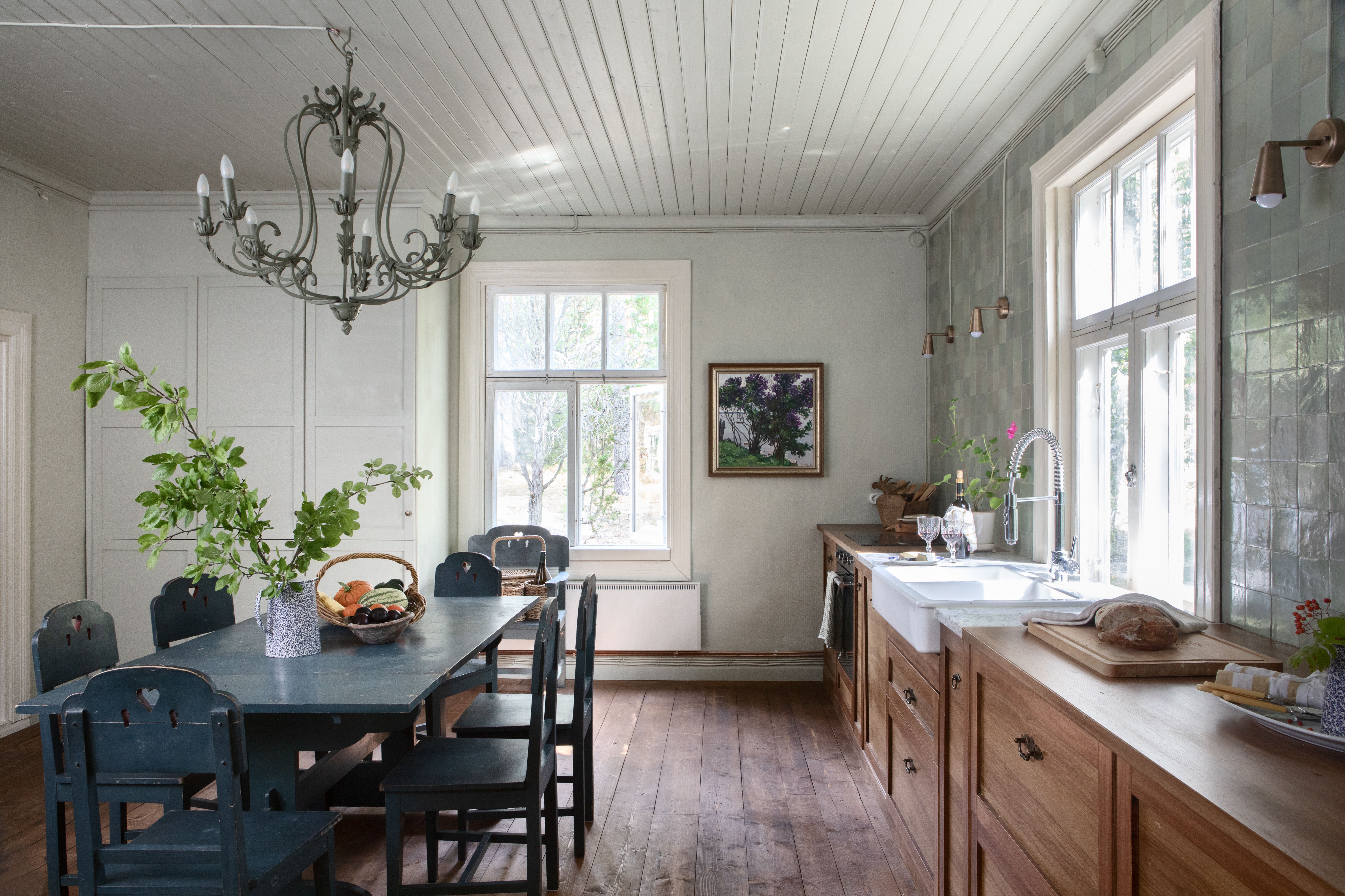 –Keittiöstä tuli tunnelmallinen ja kodikas paikka, jonne on ihana tulla aikaisin aamulla, kun aurinko alkaa pilkistää vanhojen ikkunoiden läpi ja luo muuttuvia varjoja seinille. Tulevaisuuden projekti on puulieden palauttaminen keittiön nurkkaan, Sofia kertoo.