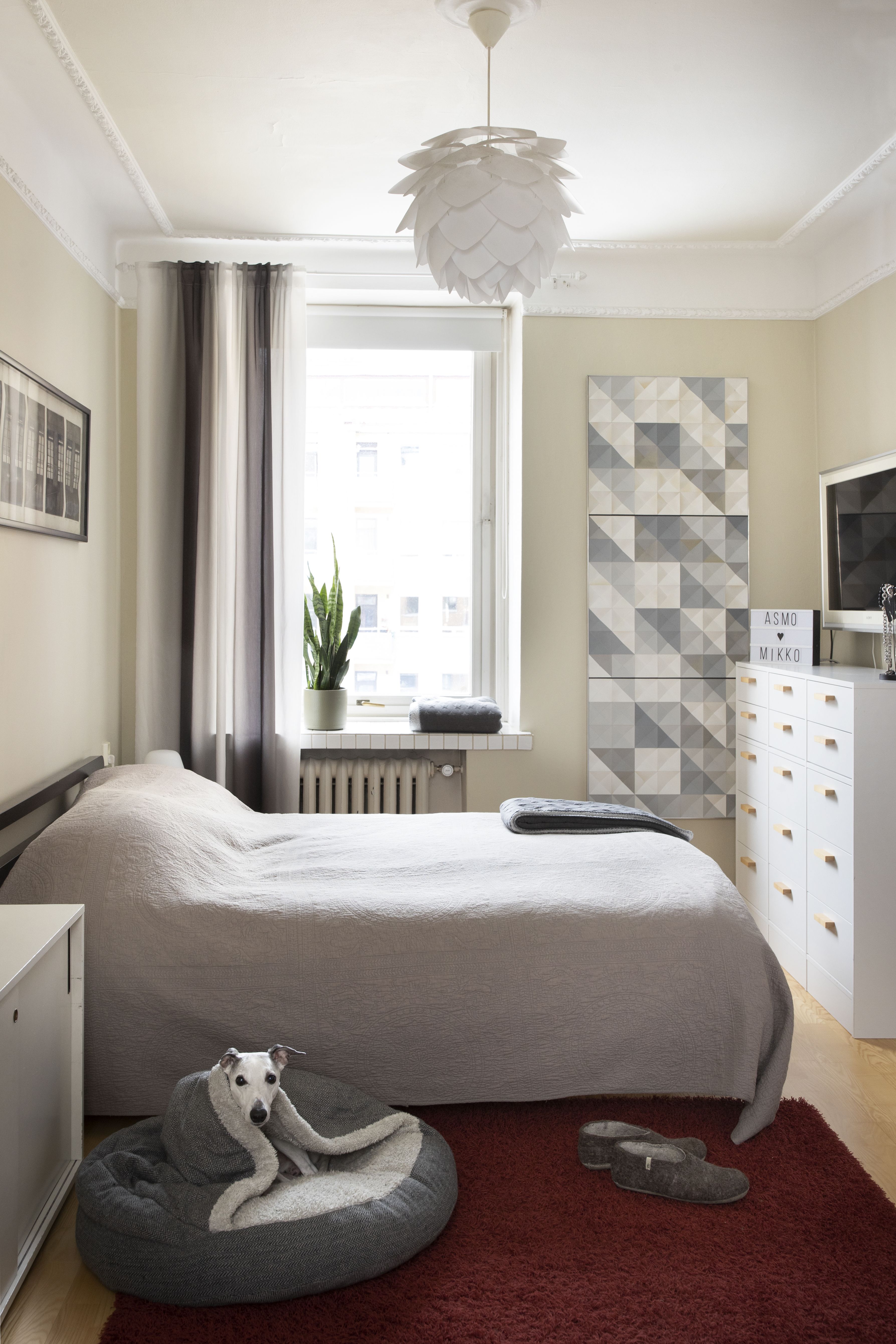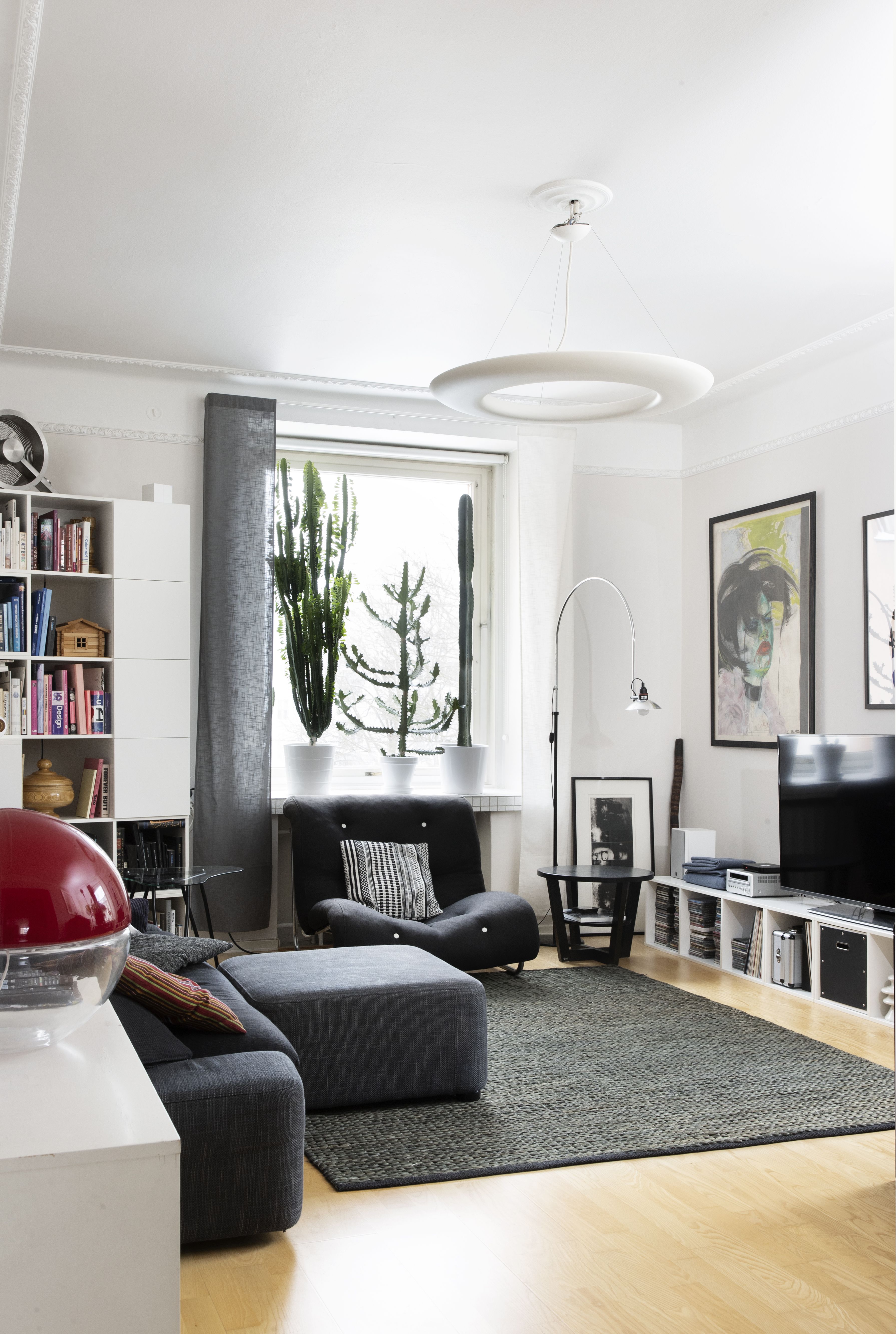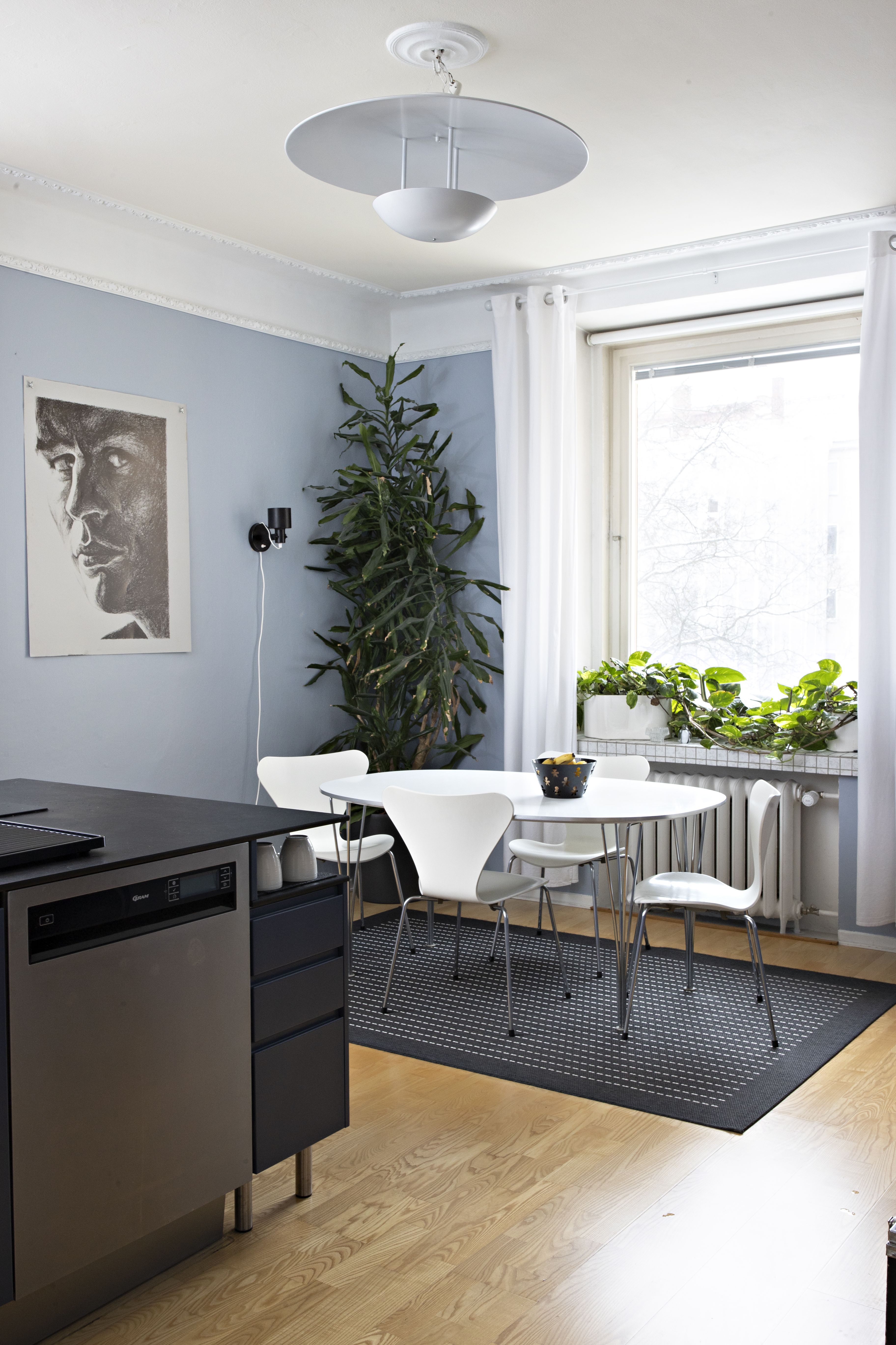 Olemme muuttaneet usein. Muutto itsessään on hirveää, ja koen luopumisen tuskaa, mutta rakastan silti prosessia: on pakko käydä nurkat läpi, siivota ja inventoida tavaroita. Se on puhdistavaa. Muuttaminen sopii levottomalle luonteelleni. Kaipaan uusia tuulia, reittejä ja kulmia, ja vaihtelunkaipuussani suorastaan haen muutosta. Tässä asunnossa olemme asuneet pidempään kuin missään aiemmista. Vähän alkaa jo tuntua, että olisiko aika laittaa taas hulinaksi ja katsoa jotain uutta. Olemme kuitenkin kiintyneet tähän kotiin. Sijainti vilkkaalla paikalla on liikenneyhteyksiltään mainio, sisäpihan suuntaan on hiljaista ja rauhallista, ikkunat kolmeen suuntaan antavat valoa ja pohja on meille tosi hyvä.