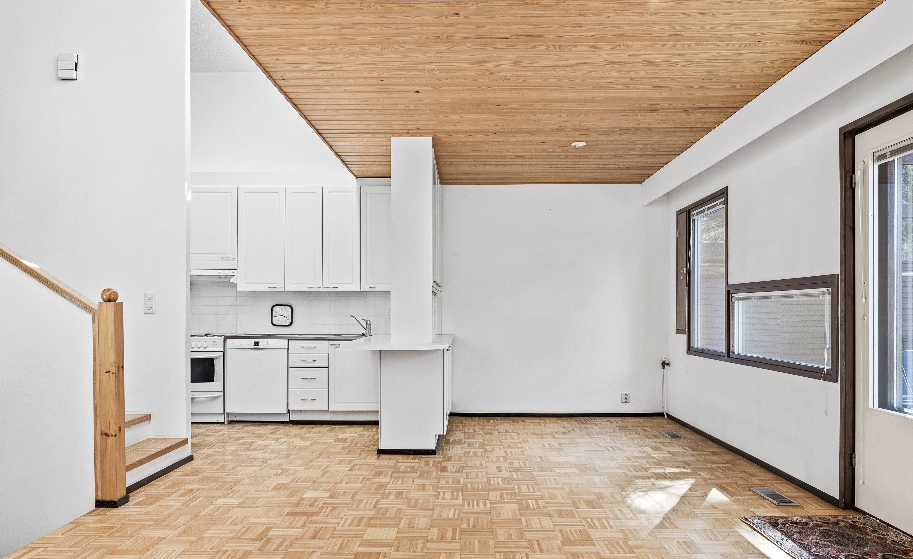 Konsultti Ossi Ritvos ja hänen puolisonsa, talousjohtaja Titti Karhunen, ovat molemmat kotoisin Espoon Olarista. Niinpä alue kiinnosti myös yhteisen kodin sijainniksi. He näkivät potentiaalia 1980-luvulla rakennetussa rivitalossa, johon mahtuisivat myös vuoroviikoin Titin lapset sekä pariskunnan labradorinnoutaja Iiris. Asunto vaati kuitenkin päivitystä etenkin keittiön osalta.