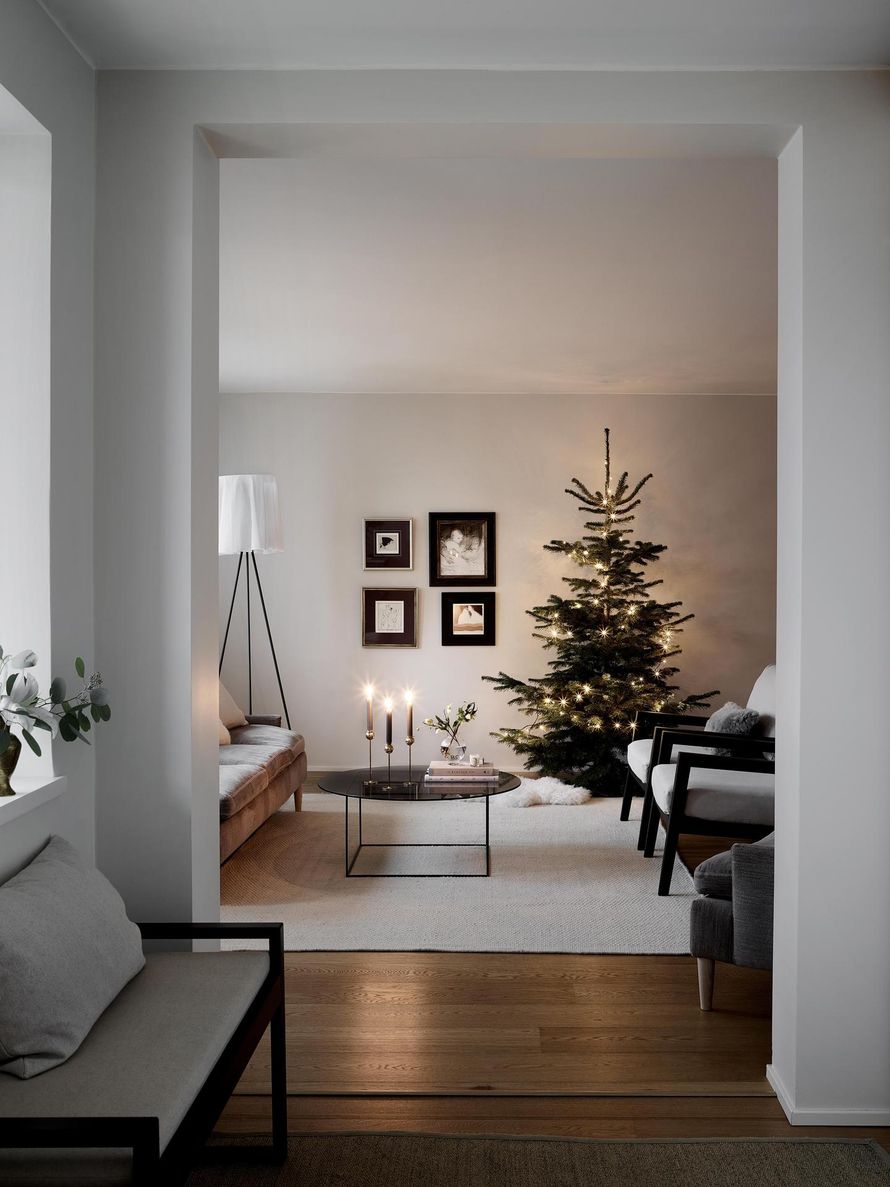 Tuikkiva kuusi ja muutama harkittu koriste tuovat juhlan tunnelman Giselda ja Tuomas Aution olohuoneeseen Kauniaisissa. Koko kodin jouluinen ilme syntyy simppeleillä, aidoilla asioilla, kuten kynttilöillä, leikkokukilla ja havuilla.