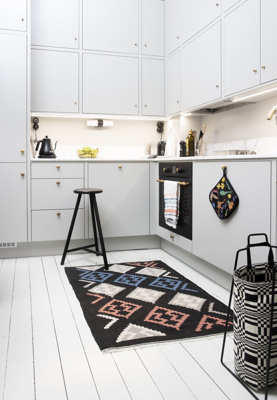 Kun etsin asuntoa, listasin toiveideni kärkeen kauniin kaakeliuunin. Ajattelin, että se voisi olla liikaa vaadittu - kunnes tämä koti tuli vastaan. Vaikka talo on rakennettu vuonna 1902 työväen asunnoiksi, täällä oleva uuni on poikkeuksellisen koristeellinen, koska asunnossa on asunut aikoinaan kaakeliuunien tekijä. Minulla kävi muiltakin osin uskomaton tuuri tämän kodin kanssa. Kolme ostajaehdokasta tarjosi asunnosta minua enemmän, mutta lopulta kodin 93-vuotias omistaja halusi myydä siitä huolimatta minulle, koska kerroin muuttavani tänne kahden lapsen kanssa ja lupasin säilyttää vanhan talon hengen. Hänen ainoa ehtonsa oli, että lähetän hänelle kuvat remontin lopputuloksesta.