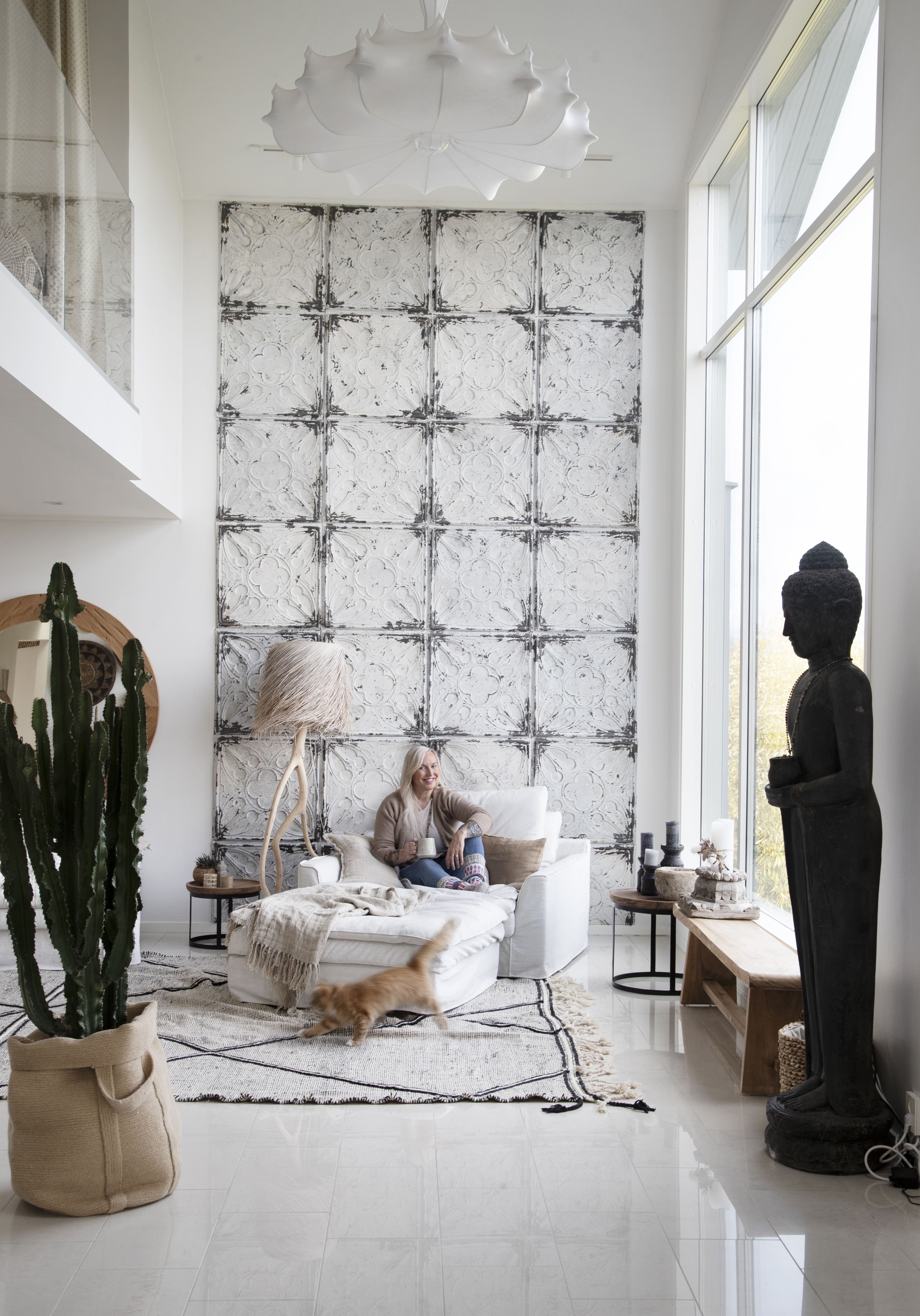 Jutta Larm arvostaa hetkiä ikkunan ääressä ja sanoo, että koti muuttuu siinä missä muukin elämä. Entinen minimalisti vannoo nyt boho-hengen nimeen.