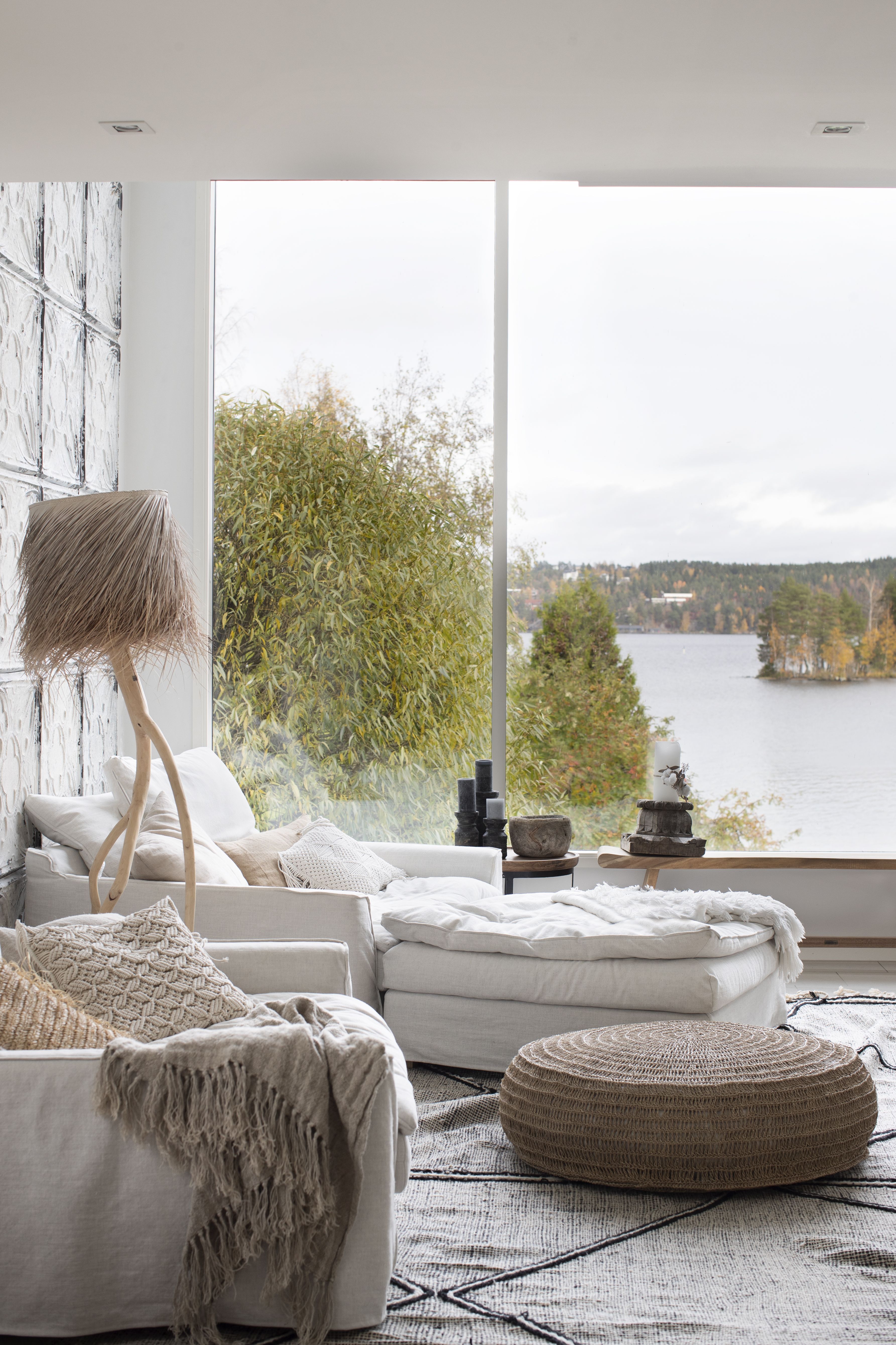 Kahvia nauttiessani ihailen samalla olohuoneestamme Pyhäjärvelle avautuvaa näkymää. Fiilistelen sitä, miltä luonto näyttää. Kun aikanaan ostin asuntomme, yksi tärkeimmistä syistä oli maisema. Se aukesi silmieni eteen heti eteisestä ja sinetöi päätökseni. Vesi on tärkein elementtini, koska kasvoin sen äärellä. En koskaan väsy ihmettelemään sitä. Katselemme Juhan kanssa järvelle myös yläkerran makuuhuoneestamme. Vastarannalla meitä tervehtivät Pyynikin valot. En usko, että haluan enää koskaan asua kaupungin keskustassa. Luonto maadoittaa, ja luulen, että seuraava kotimme tulee olemaan vieläkin kauempana kaikesta.