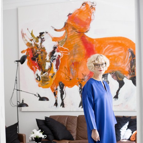 En kaipaa kotiimme enää lisää tavaraa, mutta tuttujen tekemää taidetta voisi olla nykyistäkin enemmän. Kun itse mietin työssäni kengänpohjien pitoa ja lestin istuvuutta, ihailen toisten kykyä tehdä teoksia, jotka vetoavat tunteisiin ja joista tulee hyvälle tuulelle. Ehkä viehätyn taiteilijoiden luovuudesta niin vahvasti siksi, että se on niin toisenlaista kuin omani. Minua inspiroivat Jasmin Anoschkinin ja Fanny Tavastilan kaltaiset tyypit, joilla on kyky luoda omia maailmojaan. Haaveilin vuosia Fannyn maalauksesta, kunnes viime syksynä lopulta hankin sen itselleni 40-vuotislahjaksi. Yhdessä muiden taideteosten kanssa se tuottaa minulle iloa ja hyvää oloa joka päivä.