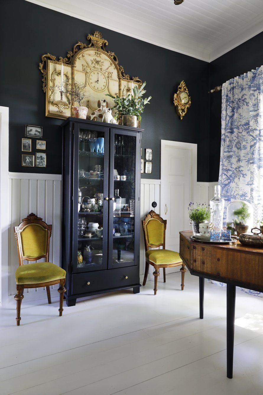 Olen maalari ja rakastan värejä. Ne merkitsevät minulle paljon, en voisi elää valkoisessa kodissa. Väreillä voi luoda tiloja, joilla on selkeä luonne. Sellaisissa tiloissa haluan elää. En ole tehosteseinien ystävä, vaan haluan aina maalata tai tapetoida koko huoneen. Valitsen sävyt niin, että ne elävät valon mukana ja ovat aina hieman erilaisia. Valo sekä eri vuorokauden- ja vuodenajat vievät minut kuin tutkimusmatkalle omassa kodissani.
