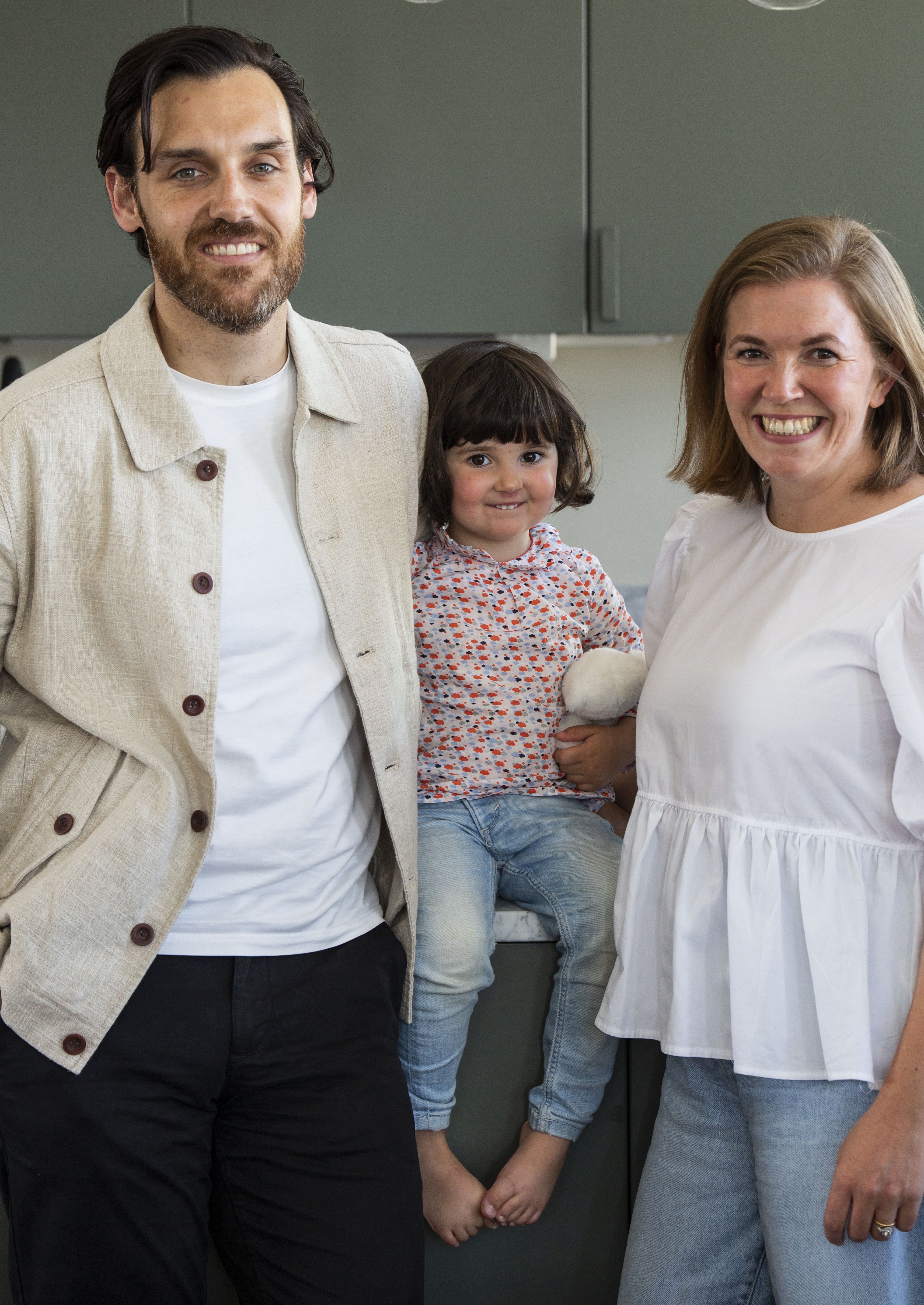 Asukkaat: Hintsa Performancen tuotekehitysjohtaja Ira Wichmann Amaral Neto, 34, Taaleri Energian Investment manager Joao Amaral Neto, 34 ja Leonor, 3.