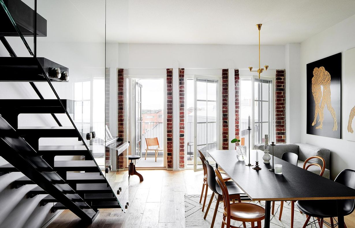Turkulainen Anna seurasi saneeraustyötä, kun telakkakiinteistön A-rappuun rakennettiin koteja. Kiinnostus heräsi. Kun talon viimeistä rappua alettiin remontoida, kävivät Anna ja puoliso Ilari katsomassa asuntoja. Ylimpien kerrosten kaksikerroksinen huoneisto tuntui heti omalta, varsinkin suuri kattoterassi hurmasi Annan. Lofthenkinen asunto on näyttävä, vanha tehdashalli on muutettu asuinkäyttöön osaavasti.