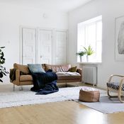 – Ihastuin siihen, että asunto on kahdessa kerroksessa. Sisääntulokerros on avokeittiön ja ruokatilan kanssa tilaa, jossa tapaamme ystäviä ja teemme ruokaa. Yläkerta taas on meidän privaattia nukkumis- ja oleskelutilaa. Sinne sisustimme myös vierashuoneen, Anna kertoo.
