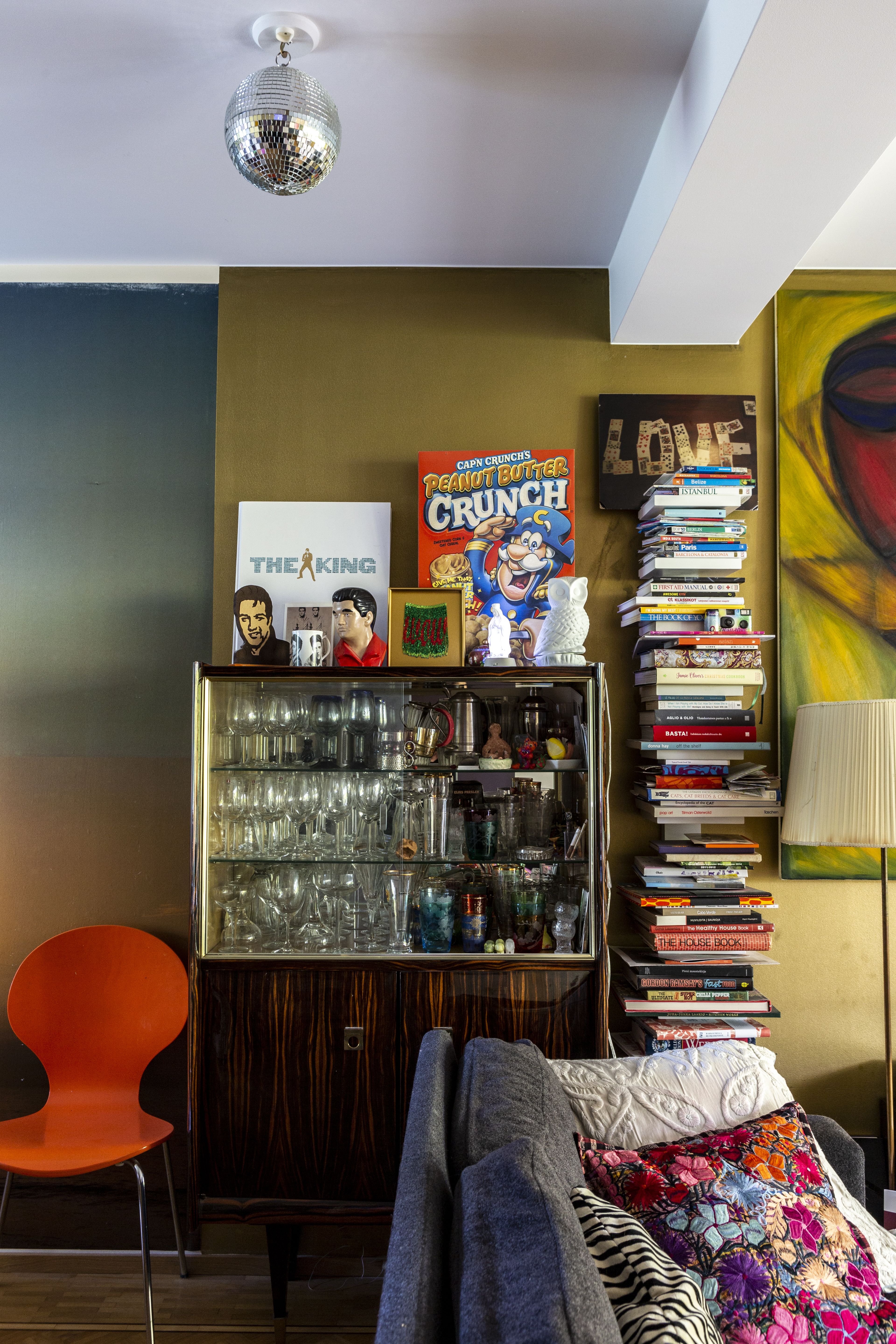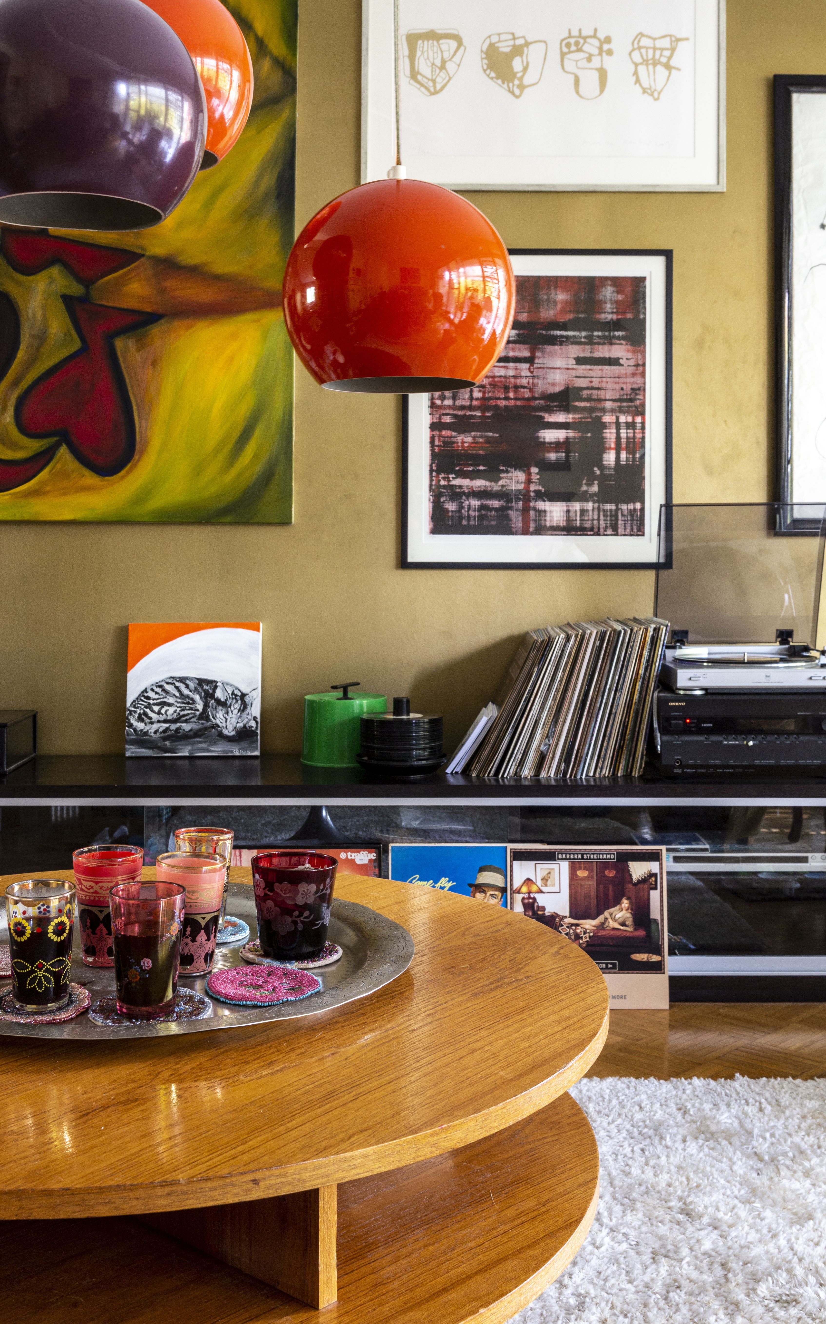 Meillä on aina ollut kotona paljon taidetta. Suurin osa teoksista on ystäviemme tekemiä, mikä tekee niistä erityisen rakkaita. Rakastan värejä, ja siksi suurin osa teoksistamme on värikkäitä. Kauneusarvoa tärkeämpää on kuitenkin se, että taide herättää kysymyksiä ja ajatuksia. Hienointa on, kun kodin seinille ripustetuista teoksista löytyy vielä vuosienkin kuluttua uusia juttuja. Olen nuoresta asti tykännyt poptaiteesta, jossa värikkyys ja graafisuus yhdistyvät huumoriin ja jopa sosiaalisten normistojen kyseenalaistamiseen. Omat typografiset helmikirjontatyöni lähenevät poptaidetta ja toivon, että ne herättävät katsojassa kysymyksiä.