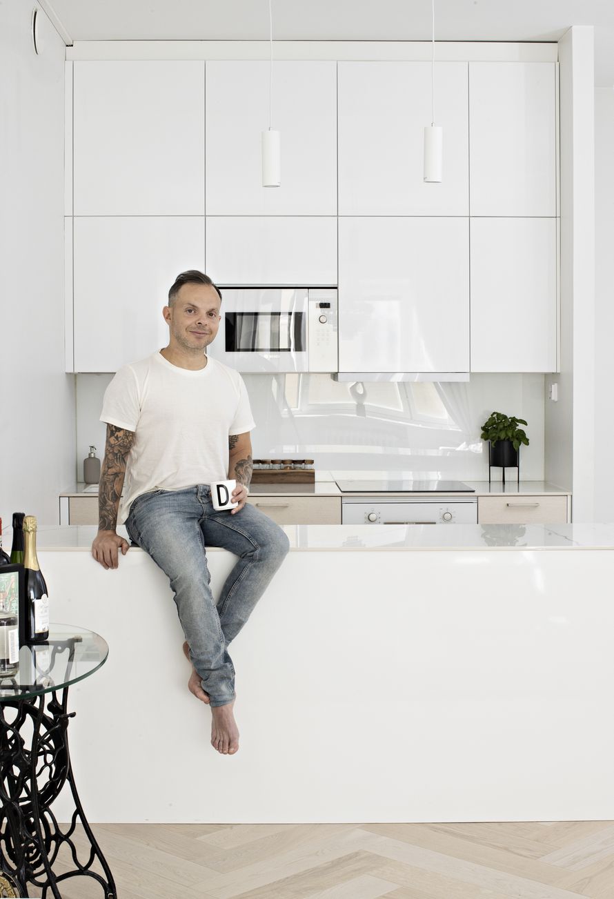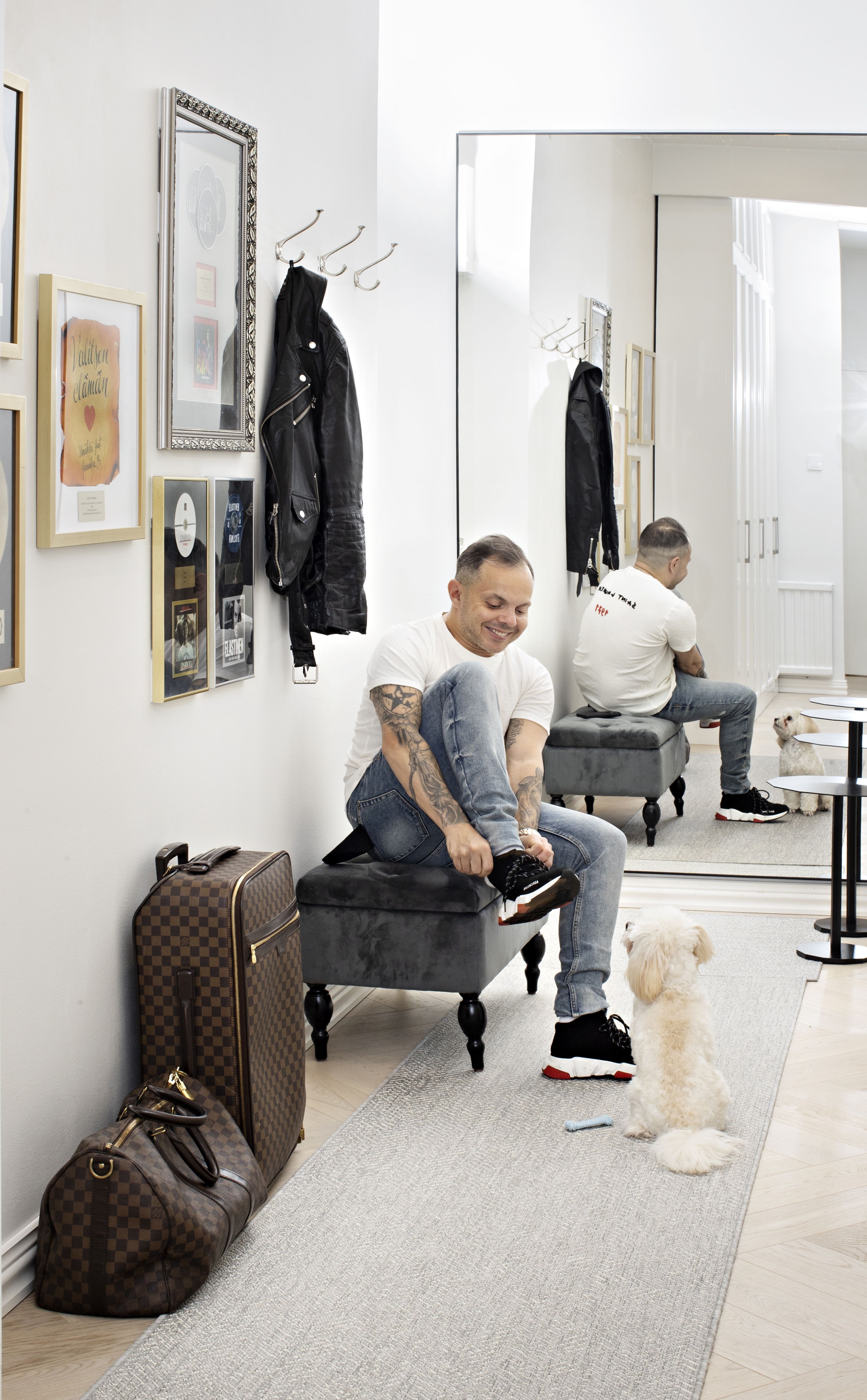 Tämä on minun ja puolisoni Sandran ensimmäinen yhteinen oma koti. Muutimme marraskuussa 2022. Asunnossa toteutuivat molempien ykköstoiveet: kalanruotoparketti, avokeittiö ja lasiovet. Aiemmin sisustukseni on ollut skandinaavisempaa, nyt halusimme pehmeämpää, lämpimämpää ja ehkä klassisempaa tyyliä. Etenkin Sandra pitää sisustamisesta. Minullekin koti on tärkeä, mutten ole yhtä pedantti.
