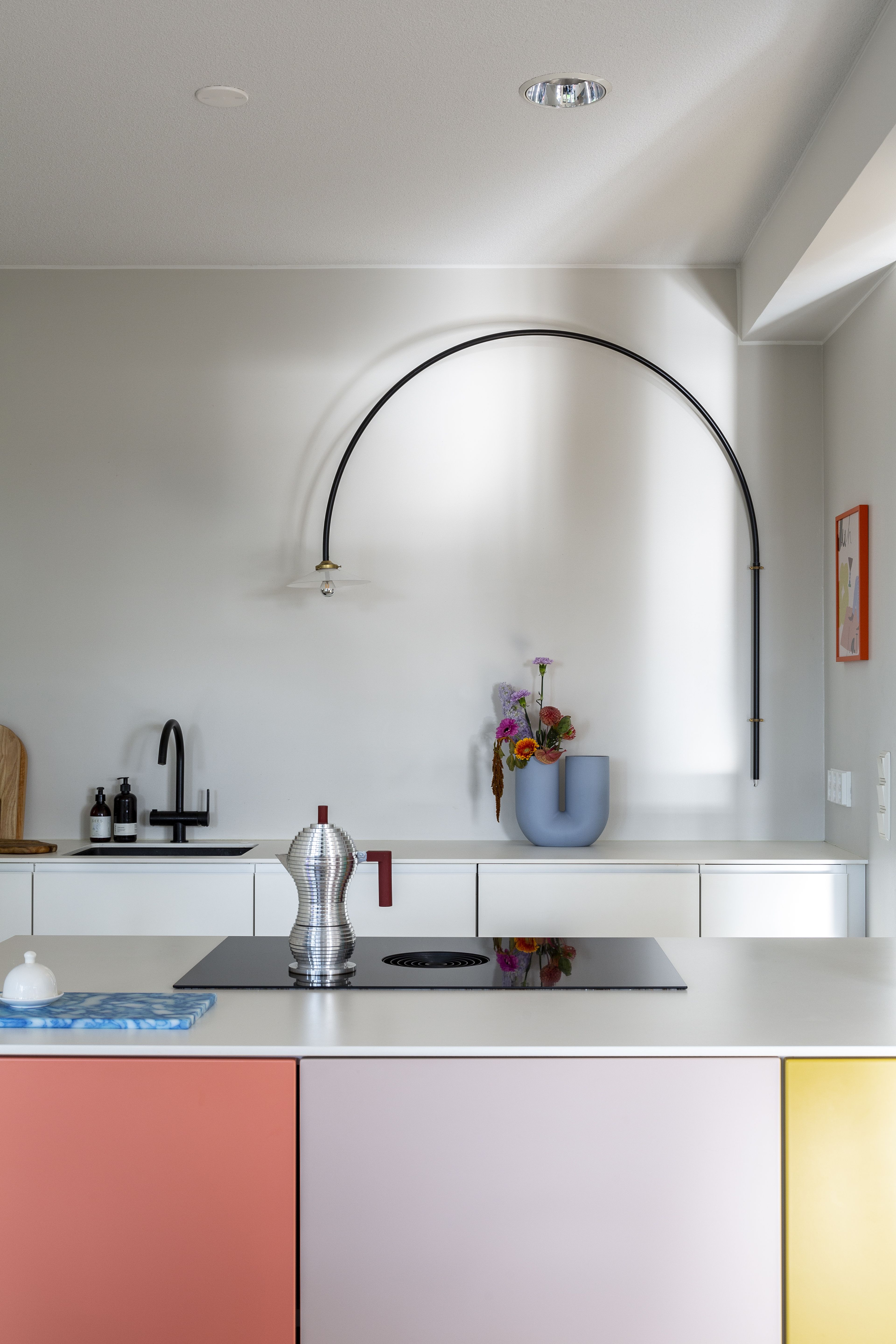 Halusin remontin yhteydessä sopeuttaa oman värimaailmani olemassa oleviin, kiinteisiin sisustuksen osiin. Värien paikka on siis muualla kuin kiintokalusteissa. Lähestyn värejä yhdistelminä, joko pareina tai mieluiten kolmen yhdistelminä. Tykkään valkoisella taitetuista pastelleista, jotka yhdistän murrettuihin maaväreihin tai vaikka kirkkaansiniseen. Puuteristen sävyjen rinnalla sinapin ja okran sävyt näyttävät mielestäni herkullisilta. On kiehtovaa, miten värit vaikuttavat toisiinsa yhdistelmissä. En esimerkiksi oikeastaan pidä magentanpunaisesta, mutta oikeaan väriin yhdistettynä se voikin näyttää suorastaan upealta.