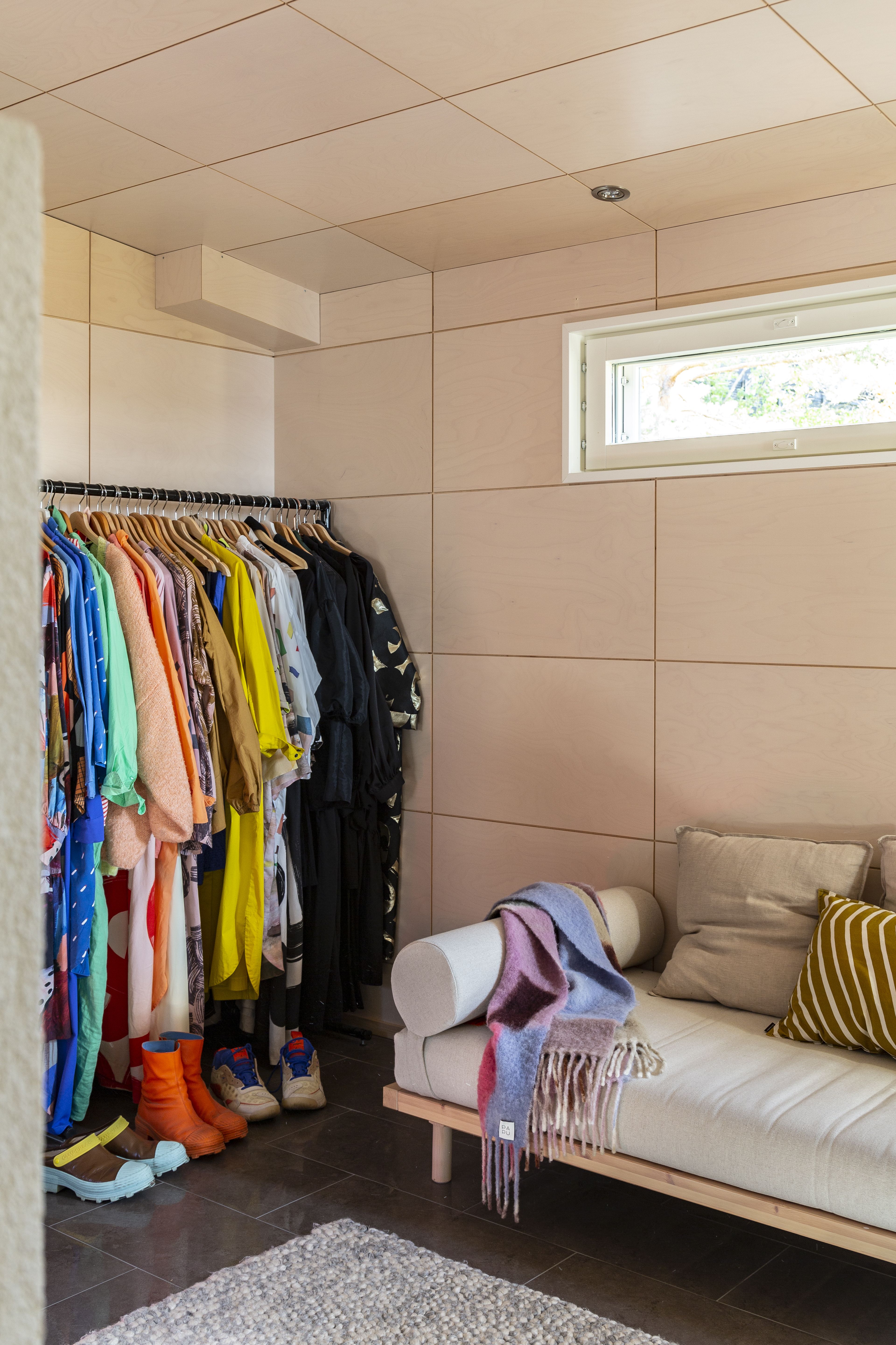 Asuimme aiemmin vanhassa hirsitalossa. Kun muutimme tänne, pohdin, miten kotiutuisimme moderniin ja kolme kertaa suurempaan rakennukseen. Veikin aikansa ennen kuin valtava talo alkoi tuntua kodilta. Aluksi kävin päivittäin eri huoneissa tervehtimässä niitä, tutustuin tiloihin ja tein niistä omiani oleskelemalla niissä. Koska asunto on niin valoisa, kaipaan täällä ympärilleni värejä, jotka loistavat kirkkaina. Rakastan valoa.