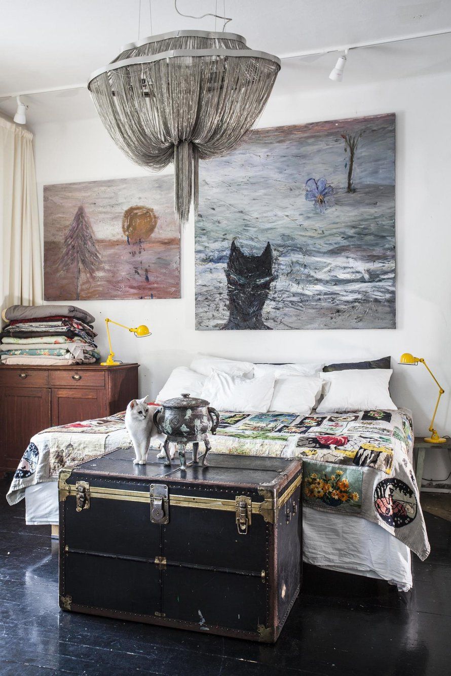 Olen huomannut, että rakennan kotia samaan tapaan, jolla maalaan. Välillä johonkin kohtaan kasaantuu esineitä ja muotoja, jotka inspiroivat minua, ja sommittelen niistä uusia kiehtovia kokonaisuuksia – ihan samoin kuin keskeneräinen maalaus kertoo minulle, mihin suuntaan lähden sitä viemään.”