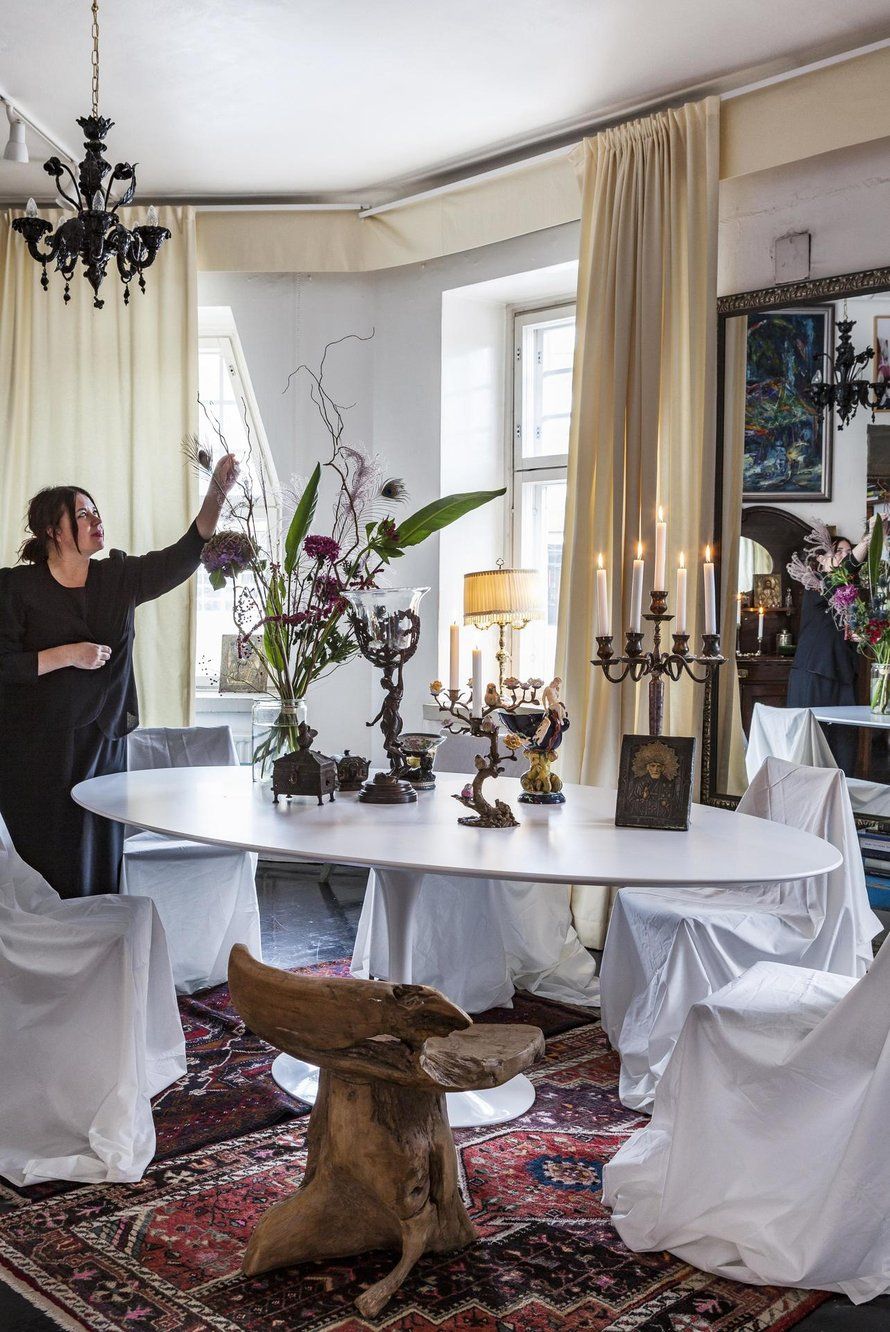 Koti: Yksi kerros jugendkerrostalossa Helsingin Kalliossa. Omassa käytössä 110 neliötä ja majoituskäytössä 55 neliötä. Kulman takana sijaitseva työhuone on kodin tärkeä jatke.