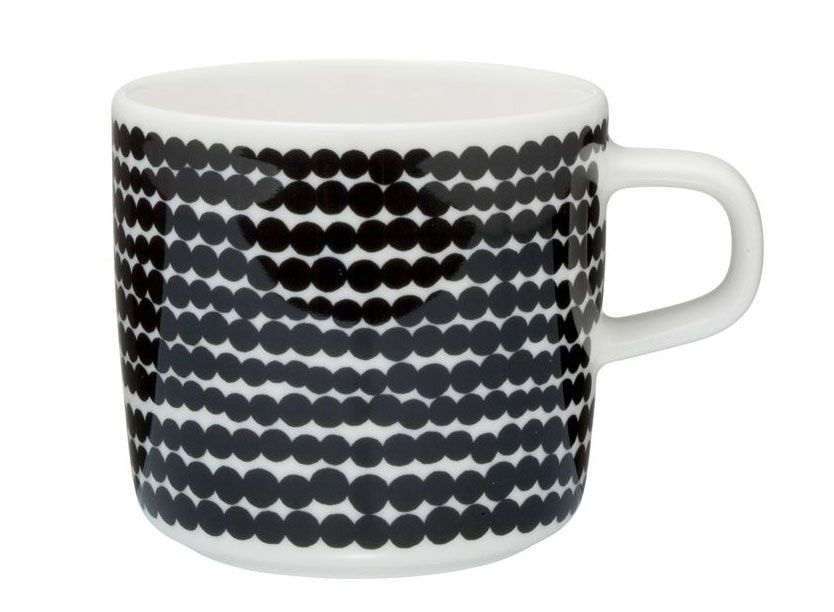 "Marimekon Oiva/Siirtolapuutarha-kahvikupit, joita minulla on kaksi. Ostin ne Suomessa käydessäni, kun asuin yksin Bostonissa USA:ssa avioeroni jälkeen. Ne olivat vain minulle, ja missä ikinä asuisinkin, ne olisivat kaunis ja suloinen lisä omaan kotiini. Koska niitä on kaksi, voin tarjota niistä kahvia, jos elämääni joskus vielä ilmestyy toinen ihminen. Ja tietysti jo siksikin, että rakastan kahvia."
