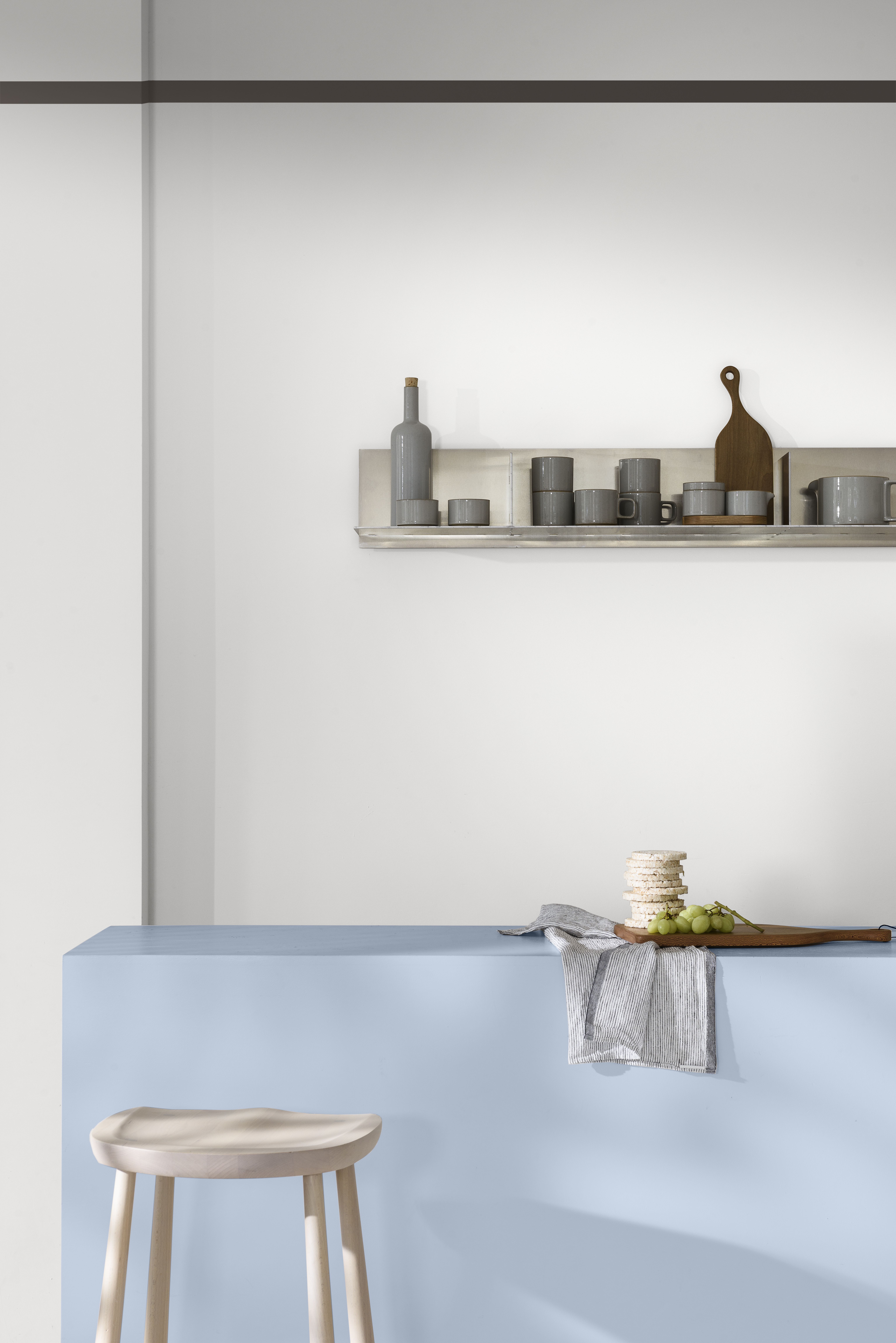 Yksi vaihtoehto on leikitellä maalaamalla seinän ylä- ja alapuolisko eri väreillä. Tällöin kannattaa huomioida tilan isot linjat, kuten ikkunoiden korkeus, jotta lopputulos tuntuu kokoavalta eikä sekavalta.
