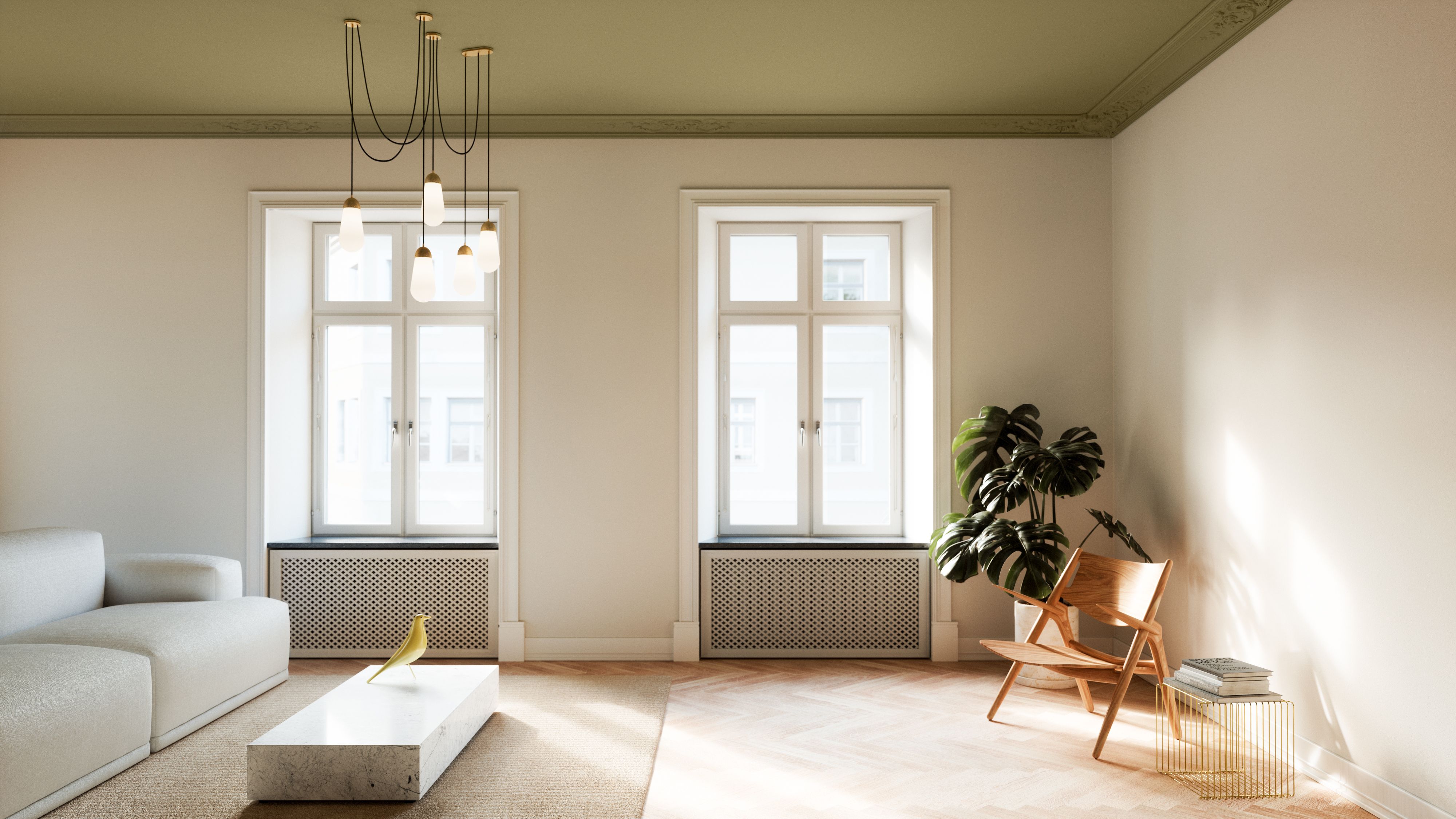 Myös maalirajoilla voi olla suuri vaikutus tilan mittasuhteisiin. Hieman leveämpi maaliraja katon rajassa voi tuoda tilaan lisäkorkeutta. Ilona Palmunen vinkkaa, että myös ikkunoiden ympärille kannattaa jättää useampi sentti tilaa. Leveämpi maaliraja kehystää ikkunan kauniisti, eikä ikkuna näytä kokonaisuudessa irralliselta.