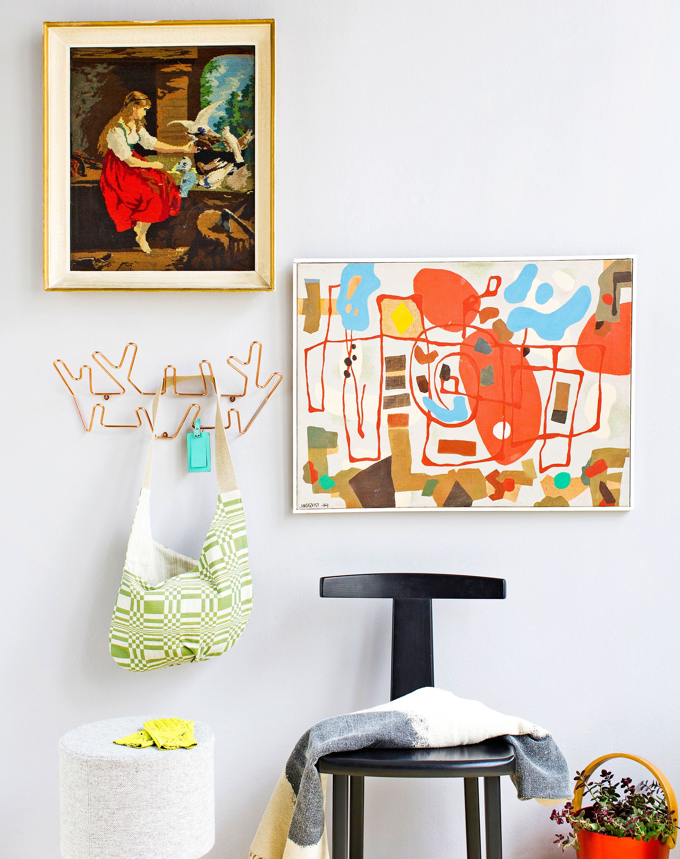 Jos et halua ripustaa seinälle hääkuvaasi tai äitisi ja isäsi hääkuvaa, mitä jos laittaisit jonkin sinulle merkityksellisen kuvan? Älä myöskään pelkää koristelemasta kotiasi näteillä tavaroilla - liian pelkistettyjen sisustusten aika on ohi. Kuva: Anna Aromaa ja Heli Blåfield
