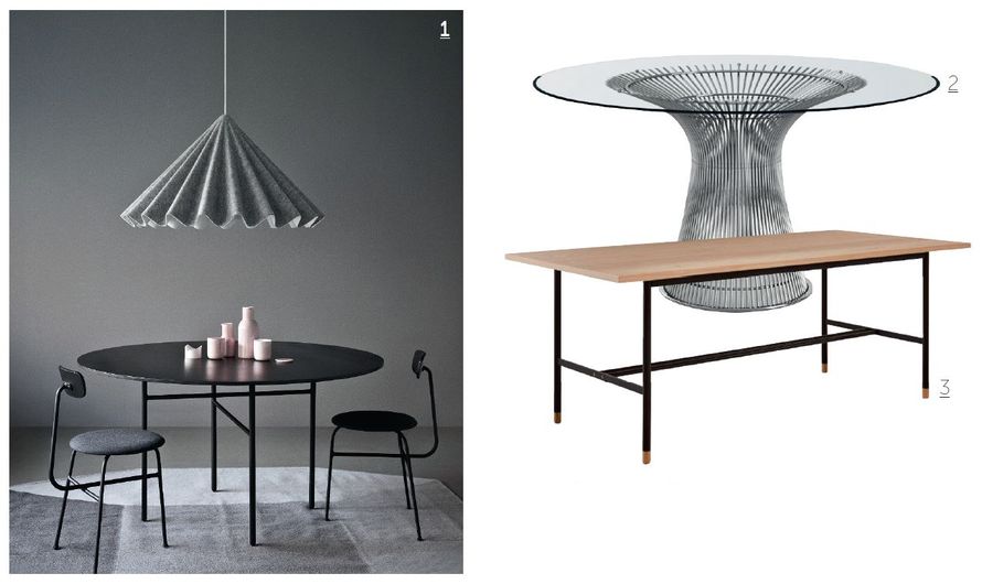 Jos haluat klassisen ruokapöydän valitse Alvar Aallon Artekille suunnitteleman pöytä 86A tai Knollin ajaton, pyöreä Platner, lasikannella ja kromisella jalkaosalla.