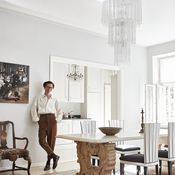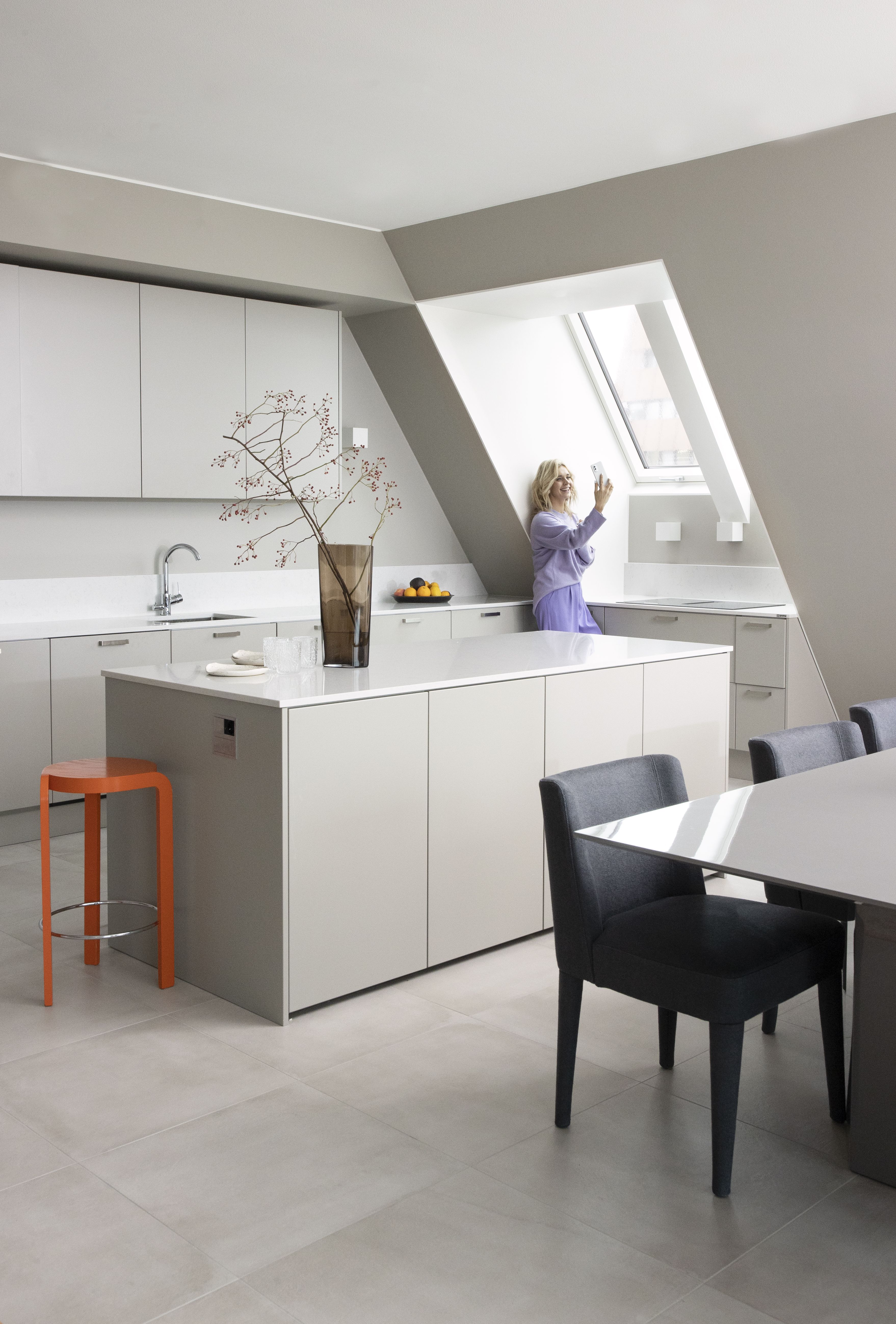 Remontoimme parhaillaan omakotitaloamme Espoossa, mutta huomasimme tarvitsevamme tukikohdan myös Helsingin keskustaan. Aiemmin jouduimme usein olemaan hotelleissa ja varaamaan tiloja asiakastapaamisia varten. Siksi tuntui loogisemmalta hankkia tällainen pysyvämpi paikka, jota käytämme paitsi asumiseen myös työntekoon, tapaamisiin ja kuvauksiin. Lisäksi järjestän täällä illallisia isolle naisverkostolle, jonka jäsen olen. Kutsumme asuntoa lempinimellä Helsinki Headquarters.