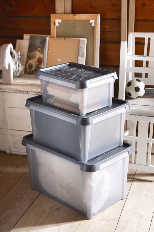 Pakkaa vaatteet vakuumipusseihin, jotka eivät päästä lävitseen hajua tai kosteutta. Myös vesitiiviit laatikot ovat hyviä. Vältä roskapussin näköisiä jätesäkkejä. Niiden läpi ei näe ja ne ovat muodoltaan epäkäytännöllisiä. Läpinäkyvät, nimikoidut laatikot ja järkevät hyllyt tekevät varastosta lisähuoneen kaltaisen.