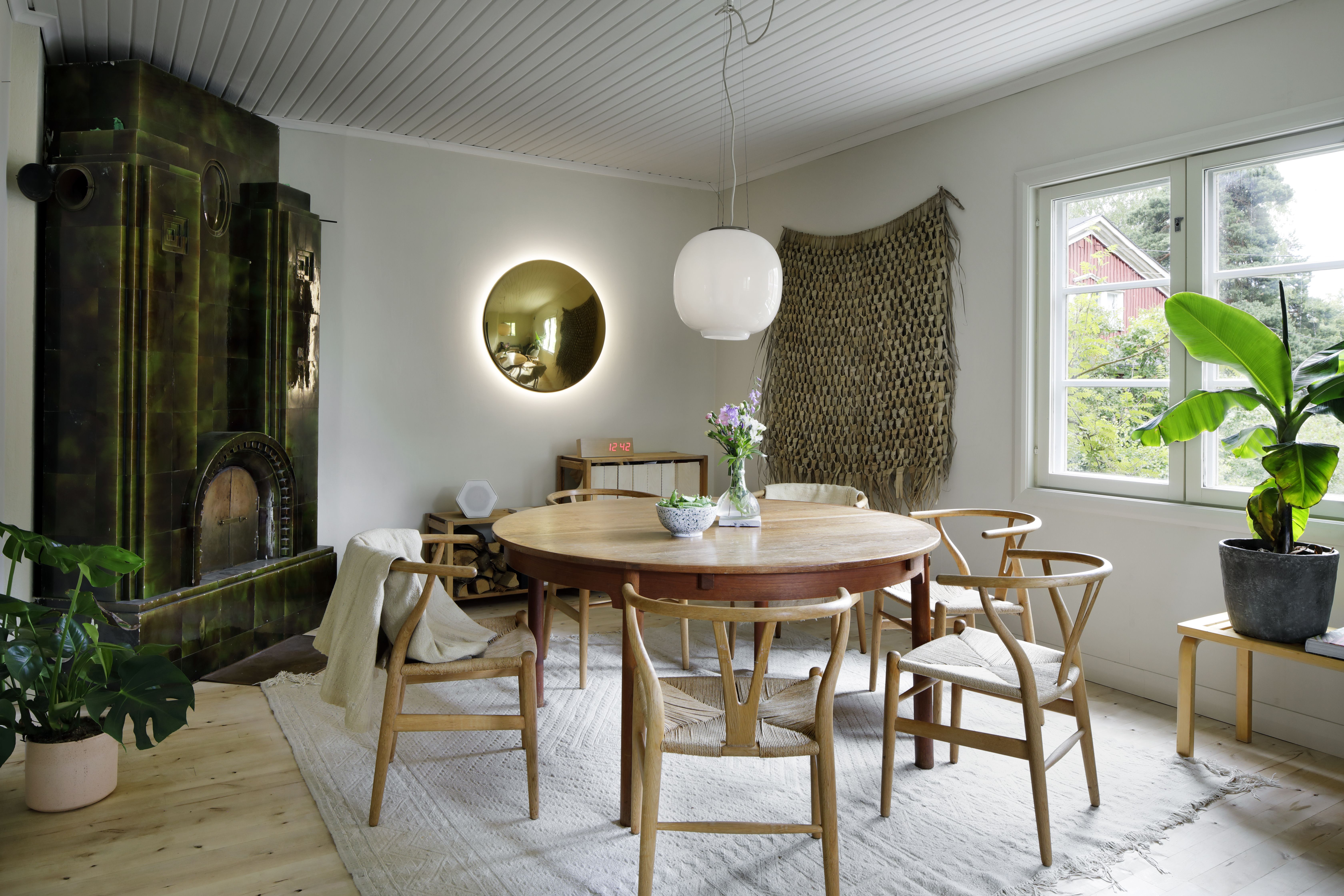 Vanhan talon tunnelma pehmensi selvästi tyyliämme. Halusimme perheellemme toimivan kodin ja näimme aika paljon vaivaa löytääksemme juuri oikeanlaiset elementit talon sisustamiseen. Ostimme kaikki kalusteet, Volan hanat sekä valaisimia Tanskan DBA:sta, joka on kuin paikallinen Tori.fi. Kun tavarat oli hankittu, pakkasimme ne pakettiautoon ja kuljetimme lautalla Suomeen.