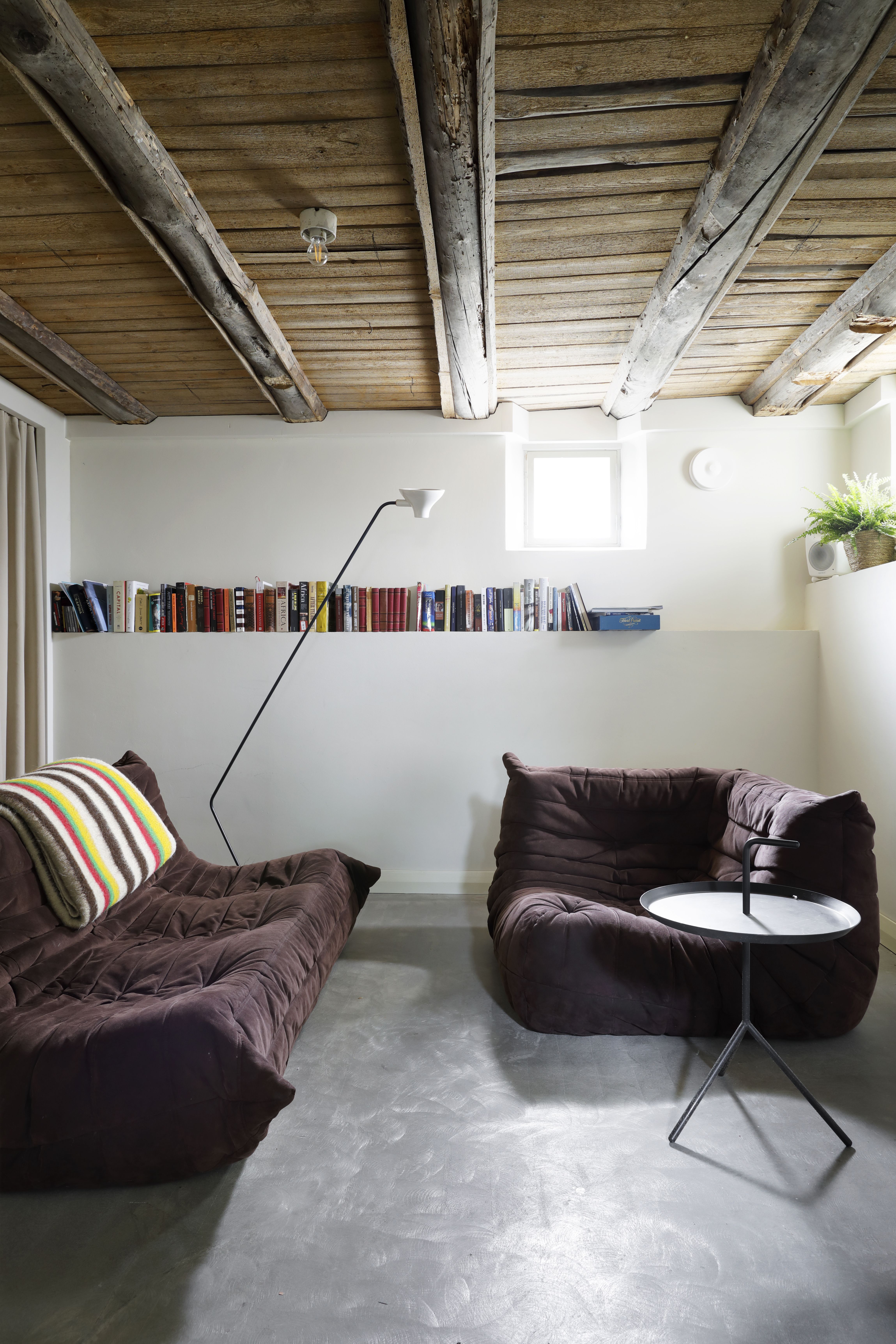 Olen aina halunnut suunnitella itse oman kotini enkä ole elänyt muiden tekemien kompromissiratkaisujen keskellä. Minulla oli takanani jo useampi remontti, mutta nyt haasteena oli satavuotias, suojeltu hirsitalo, eikä minulla ollut sellaisesta mitään kokemusta. Saimme todella paljon apua Museovirastosta. Noudatimme heidän ehdotuksiaan, vaikka emme niiden vuoksi voineet esimerkiksi tehdä tilojen välille sellaisia aukotuksia kuin olimme alussa suunnitelleet. Arkkitehtimme Richard Sirén pohti sinnikkäästi toivomiemme ratkaisujen toteuttamismahdollisuuksia. Hänen ansiostaan löysimme lopulta myös tavan toteuttaa kellarikerroksen puulämmitteinen sauna, josta luulimme joutuvamme byrokratian edessä luopumaan.