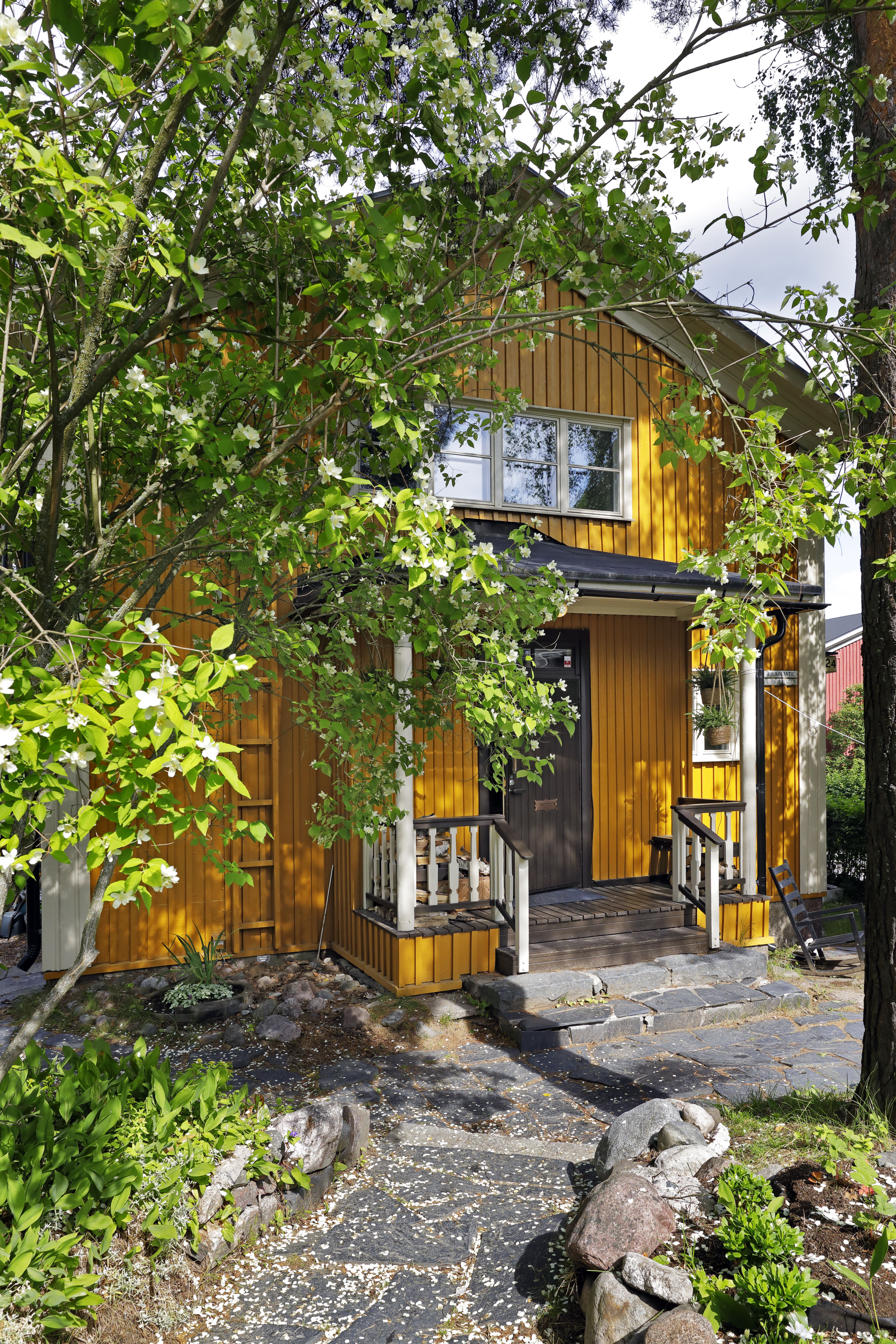 Vaikka olimme ennen vakuuttuneita siitä, että haluamme aina asua keskustassa, on Käpylän puutaloidylli hiljaa imeytynyt meihin. Olemme eläneet täällä nyt kaikki vuodenajat ja jokainen niistä on osoittautunut omalla tavallaan antoisaksi. Kesä on täällä erityisen yhteisöllistä ja mahtavaa aikaa. Talvella on ollut pakko oppia tekemään lumitöitä. Lapsille tämä on uskomattoman hieno paikka asua. Aina löytyy leikkiseuraa, ja osuuskunnan ylläpitämässä trampoliinissa voi käydä purkamassa energiaa. Frida nauttii siitä, että voi itse kävellä naapurissa asuvan ystävän luo.