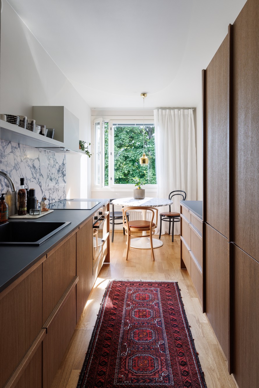 Samassa yhteydessä voi olla myös järkevää integroida osa kodinkoneista – se tekee keittiöstä seesteisemmän näköisen.