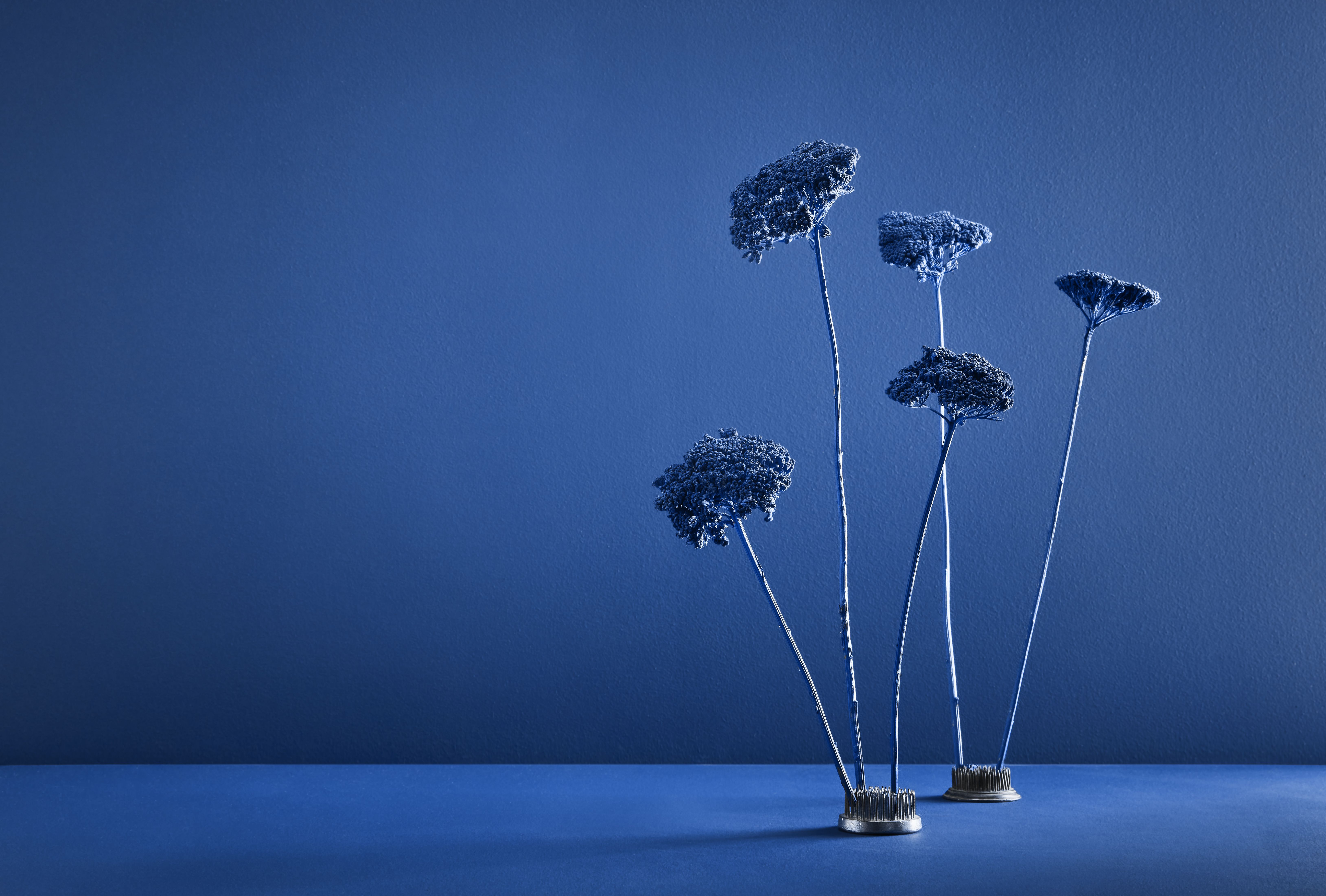 Kokeile rohkeasti lempiväriä seinään tai maalaa vanha kaappi tai jakkara kiintopisteeksi kotiin. Värit luovat kodikkuutta ja lämpöä, näinä aikoina se on yhä tärkeämpää. Mutta kannattaa olla varovainen, yksi väriläiskä neutraalissa kodissa voi siedättää ja saada haluamaan lisää. Mattapintainen ultramariininsininen on hypnoottinen valinta, joka ei jää huomaamatta.