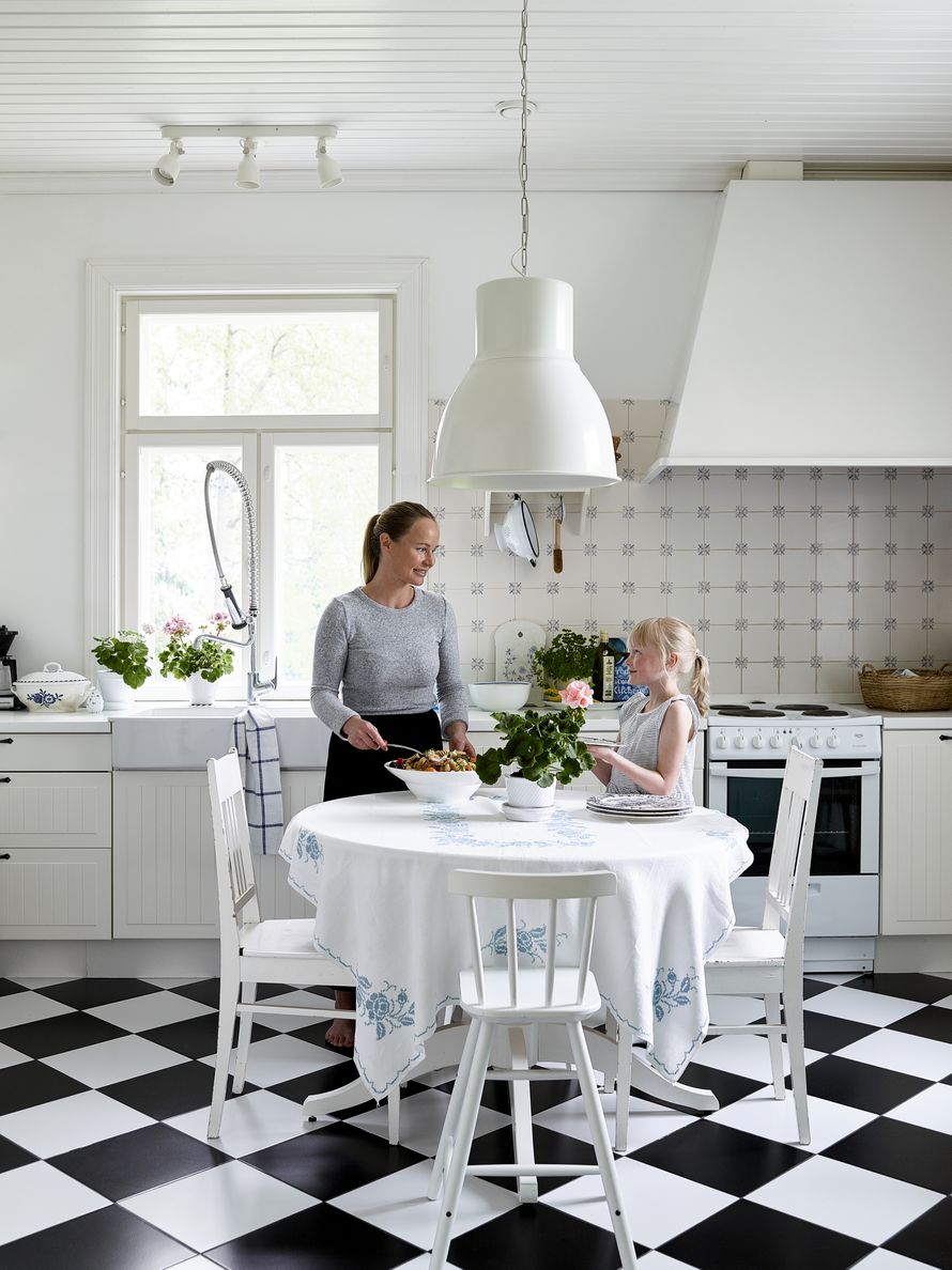 - Halusin keittiöön ehdottomasti mustavalkoisen salmiakkilattialaatoituksen. Seinäkaakeleiden mallia mietin pitempään, Helka sanoo.