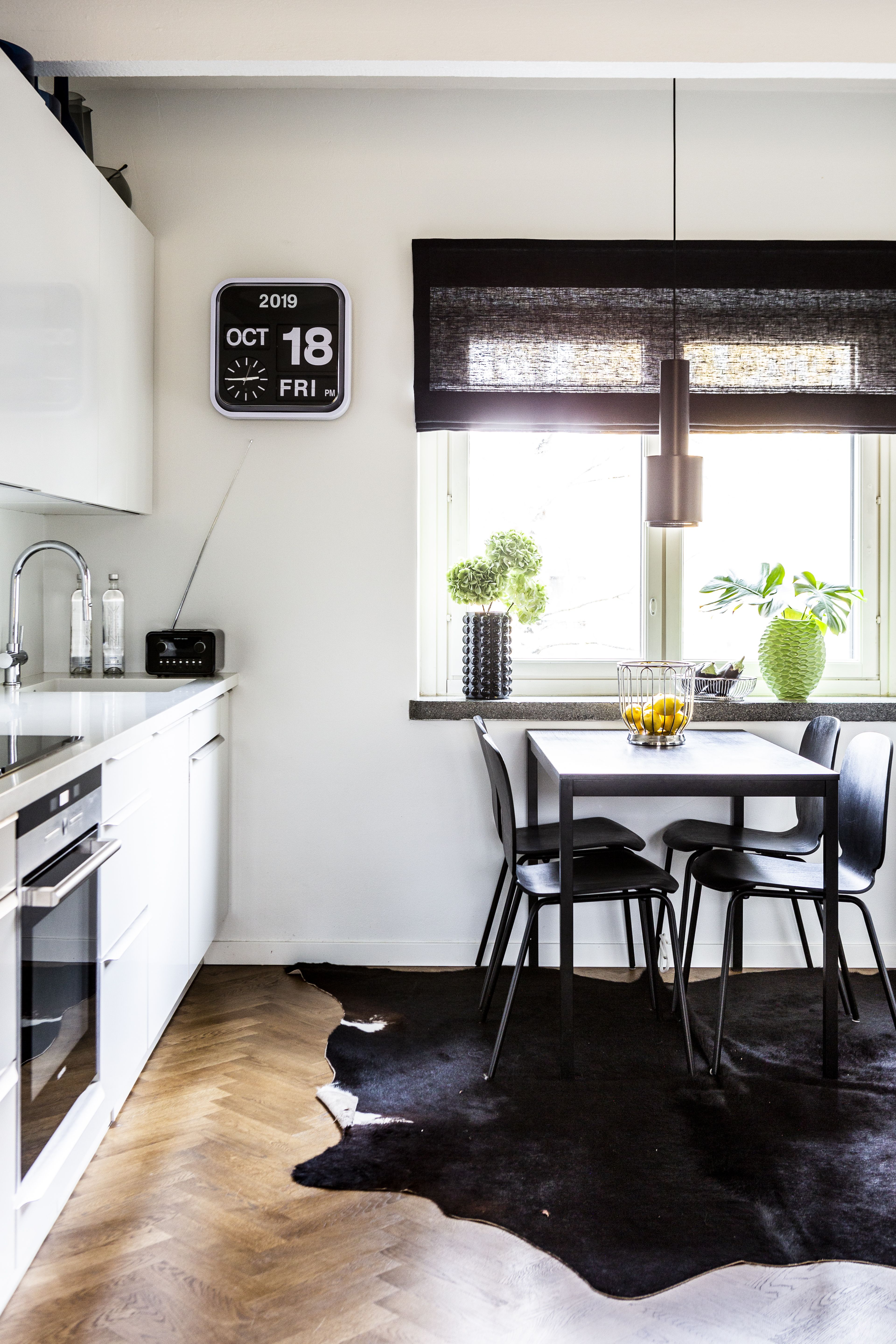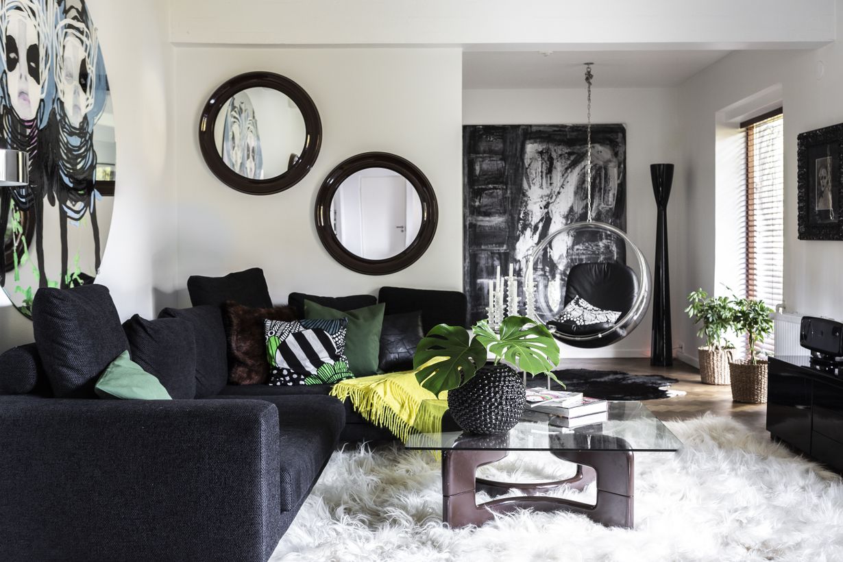 Tämä asunto on ensimmäinen koti, jonka olen toteuttanut täysin itseni näköiseksi. Olen aina pitänyt mustasta ja valkoisesta niin pukeutumisessa kuin kodissanikin. Nyt hiljalleen iän ja ehkä tämän asunnon hengen myötä olen pehmennyt ottamaan mukaan hieman muutakin väriä: erityisesti vihreää, pienen ripauksen keltaista ja jopa muutaman kukkakuvioisen sohvatyynyn! Haluan, että kodissani on selkeyttä ja se on siisti, sillä työni on hirveän hektistä ja kaikki muuttuu jatkuvasti. Tarvitsen sille vastakohdan kotonani.