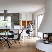 Talon arkkitehtuuri on hieno aikansa lapsi. Arkkitehdit Kaj ja Dag Englund rakennuttivat talon 1930-luvulla omille perheilleen. He lähtivät suunnittelussaan tontin kallioisesta luonnosta ja kasvillisuudesta, johon ihastuin jo ennen kuin pääsin sisään asuntoon. Huoneisto oli täydellisen remontin tarpeessa, mutta näin, että hieno pohjaratkaisu tulisi toimimaan elämässämme loistavasti. Asunnossa on eriytetty julkiset ja yksityiset tilat luontevasti. Minun makuuhuoneeni on asunnon toisessa päässä ja teini-ikäisillä lapsillani on omat rauhalliset huoneensa sekä kylpyhuone asunnon sisäpihan puolella. Kun lapset ovat vuoroviikoin isänsä luona, heidän poissaolonsa ei tunnu juurikaan siinä, miten käytän asunnon tiloja muulloinkin.