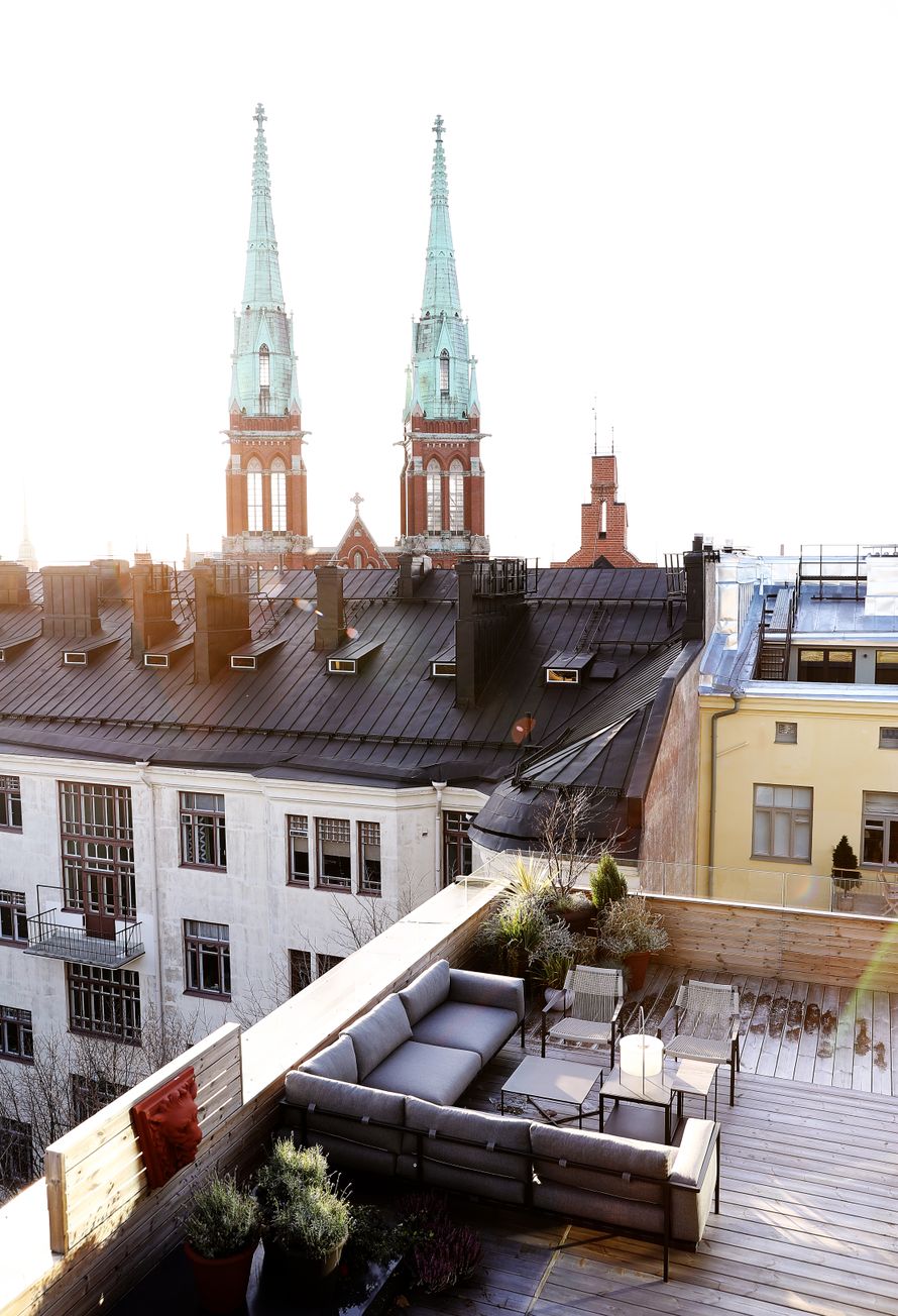 Sataneliöinen kattoterassi ja hissillä suoraan eteiseen – Katin ja Maran ylellinen koti rakennettiin helsinkiläisen arvotalon katolle