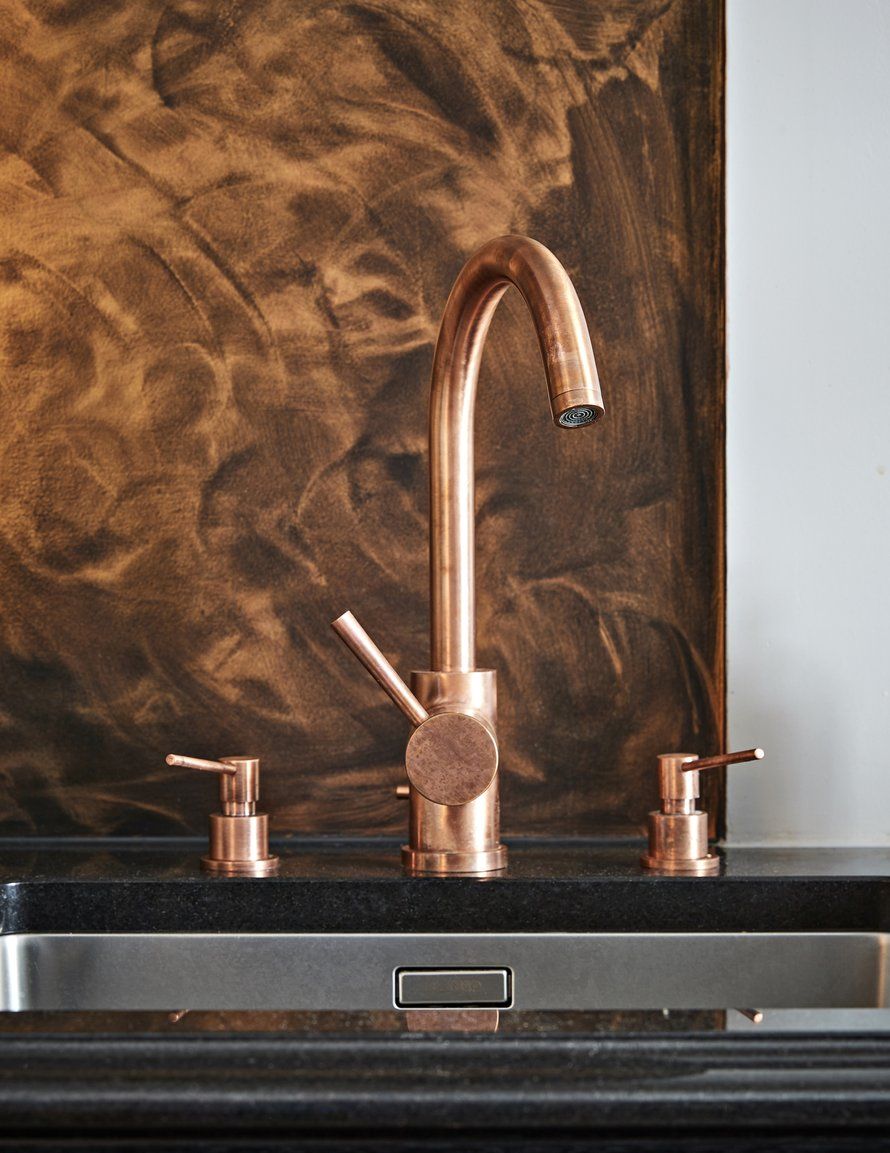 Uusimman tekniikan vastapariksi keittiössä on käsityönä teetettyjä yksityiskohtia, jotka henkivät mennyttä aikaa. Hellan päällä on muhkea, kuparinen huuva, jonka seppä toteutti Mikan luonnosten pohjalta.