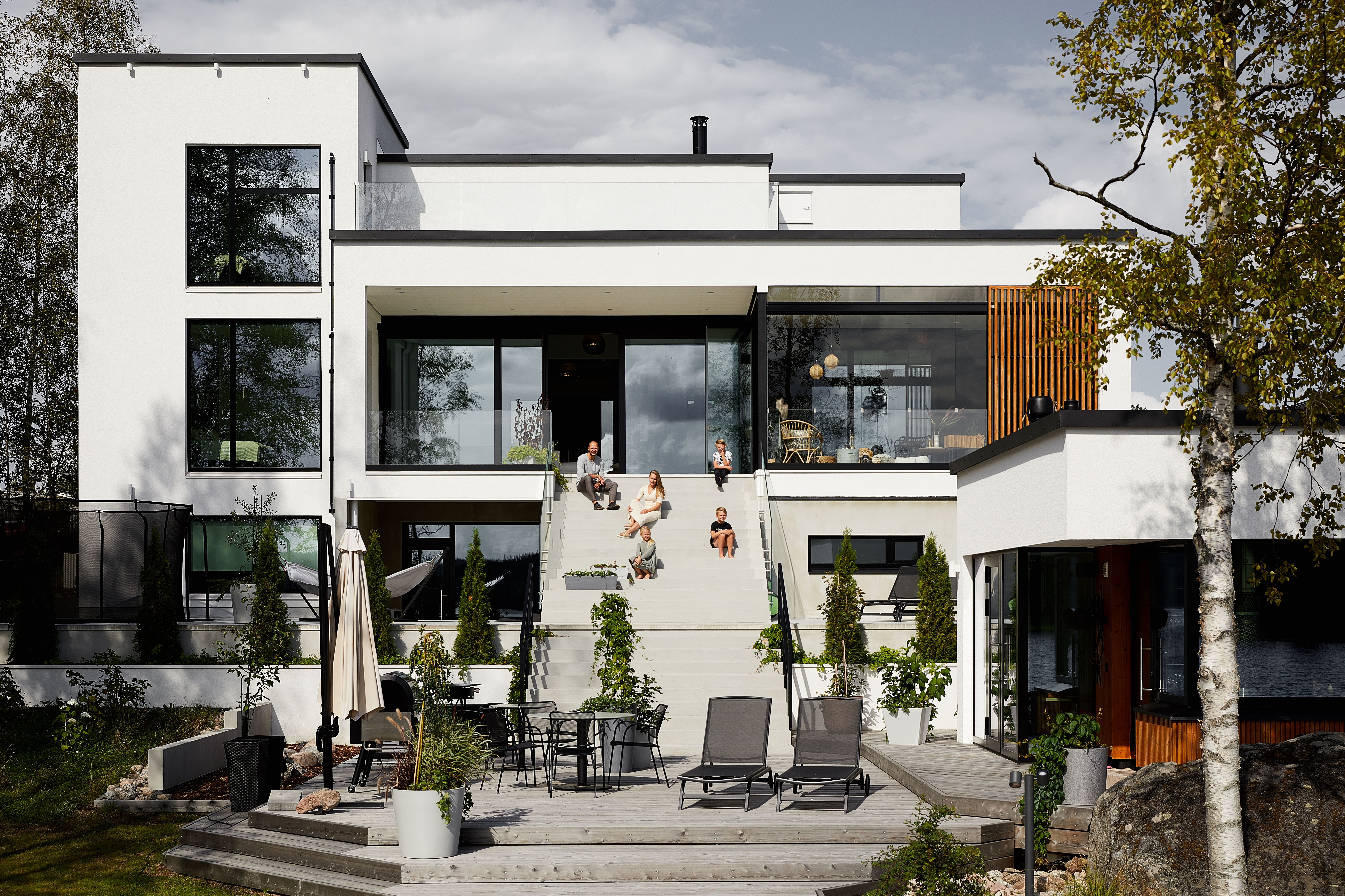 Seitsenhenkisen perheen modernista tornitalosta avautuvat unelmien maisemat Päijäneteelle
