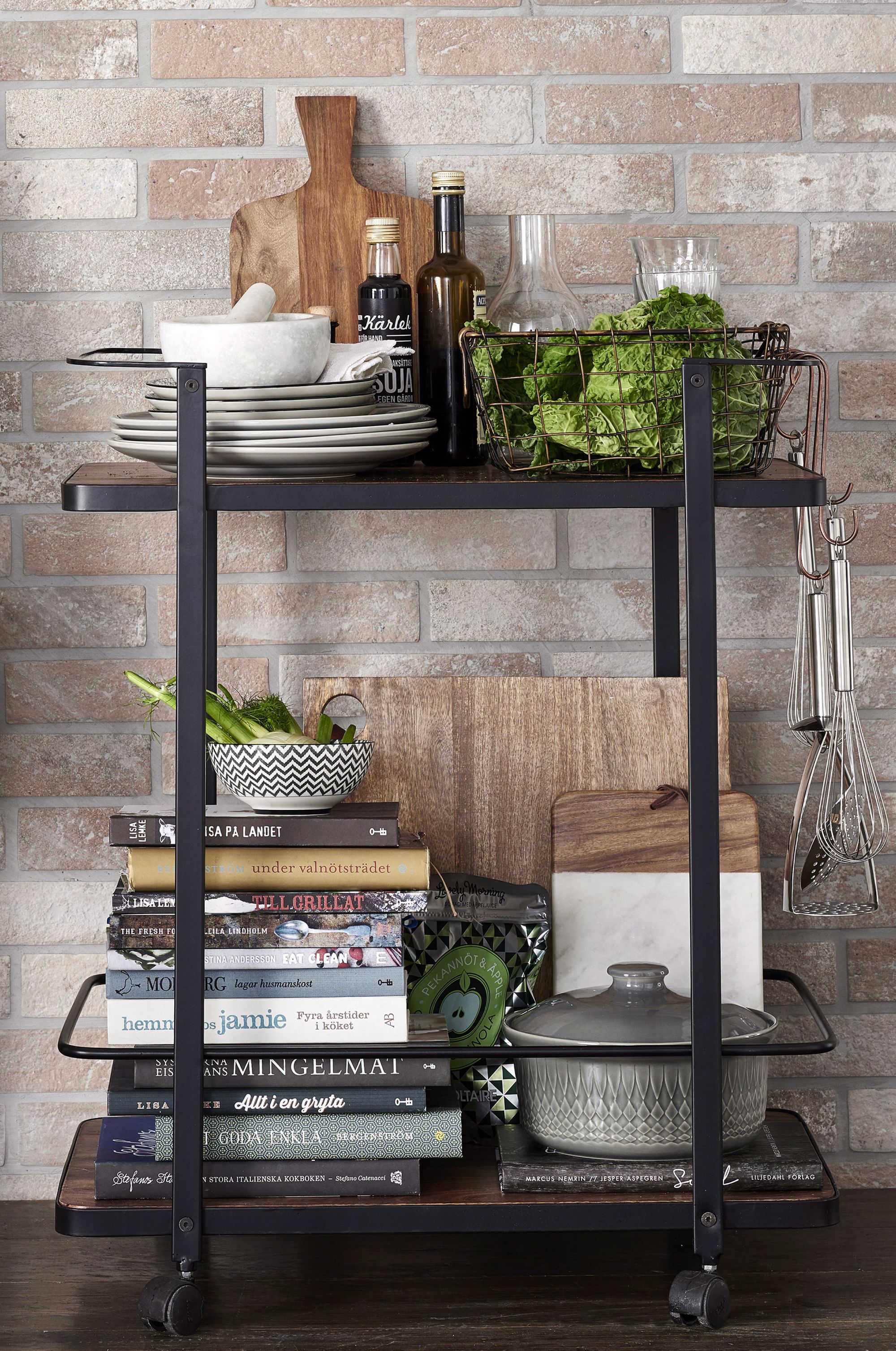 Tarjoiluvaunu tuo lisää säilytystilaa pieneen keittiöön ja on helppo liikutella tarvittaessa pois tieltä. Dell-tarjoiluvaunu, korkeus 80 cm, 199 e, Ellos.