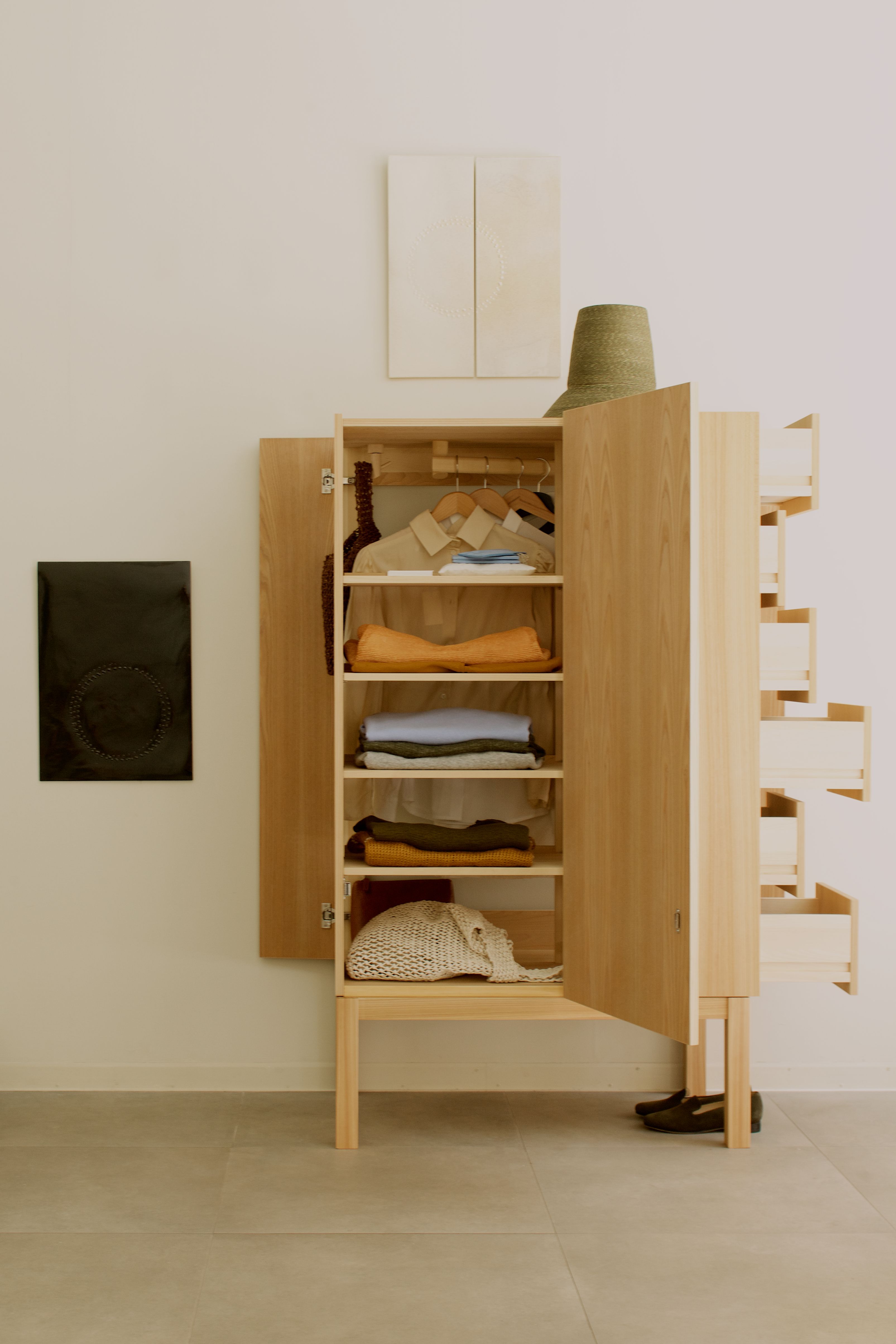 -Sen käyttämiseen tarvitsee ikään kuin salasanan. Kaapissa on salalokeroita, hyllyjä ja ripustintilaa. Siinä on ajattelua, joka avautuu käyttäjälleen vasta myöhemmin.