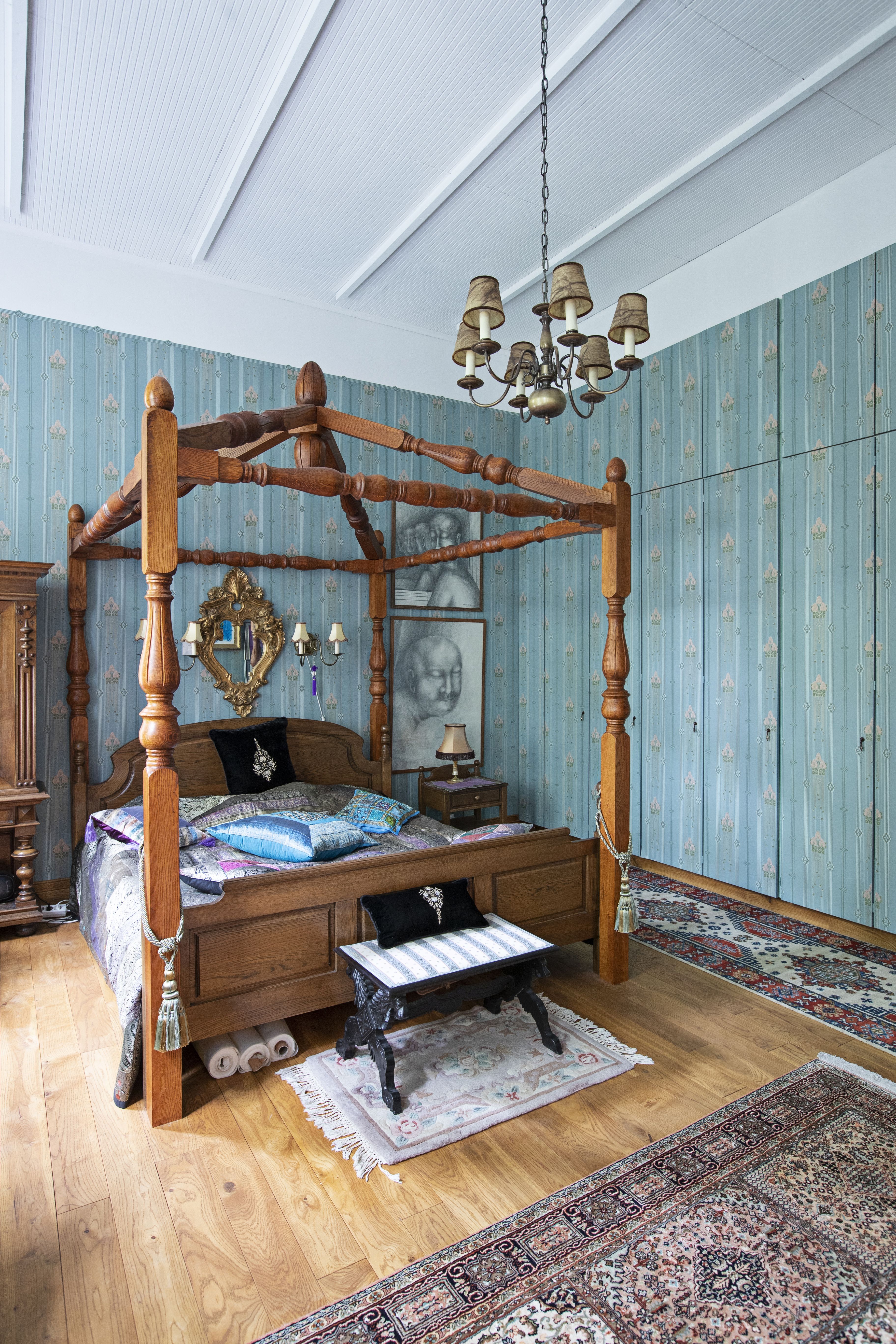 Linnan sisustus on syntynyt hiljalleen 30 vuoden aikana. Revin aikoinaan pois joitain 70-luvun tekstiilitapetteja ja etsin tilalle aikakauteen sopivat tapetit. Myös linnan vierailijat tarjoavat usein tänne sopivia tavaroita, esimerkiksi kultaisia kehyksiä.