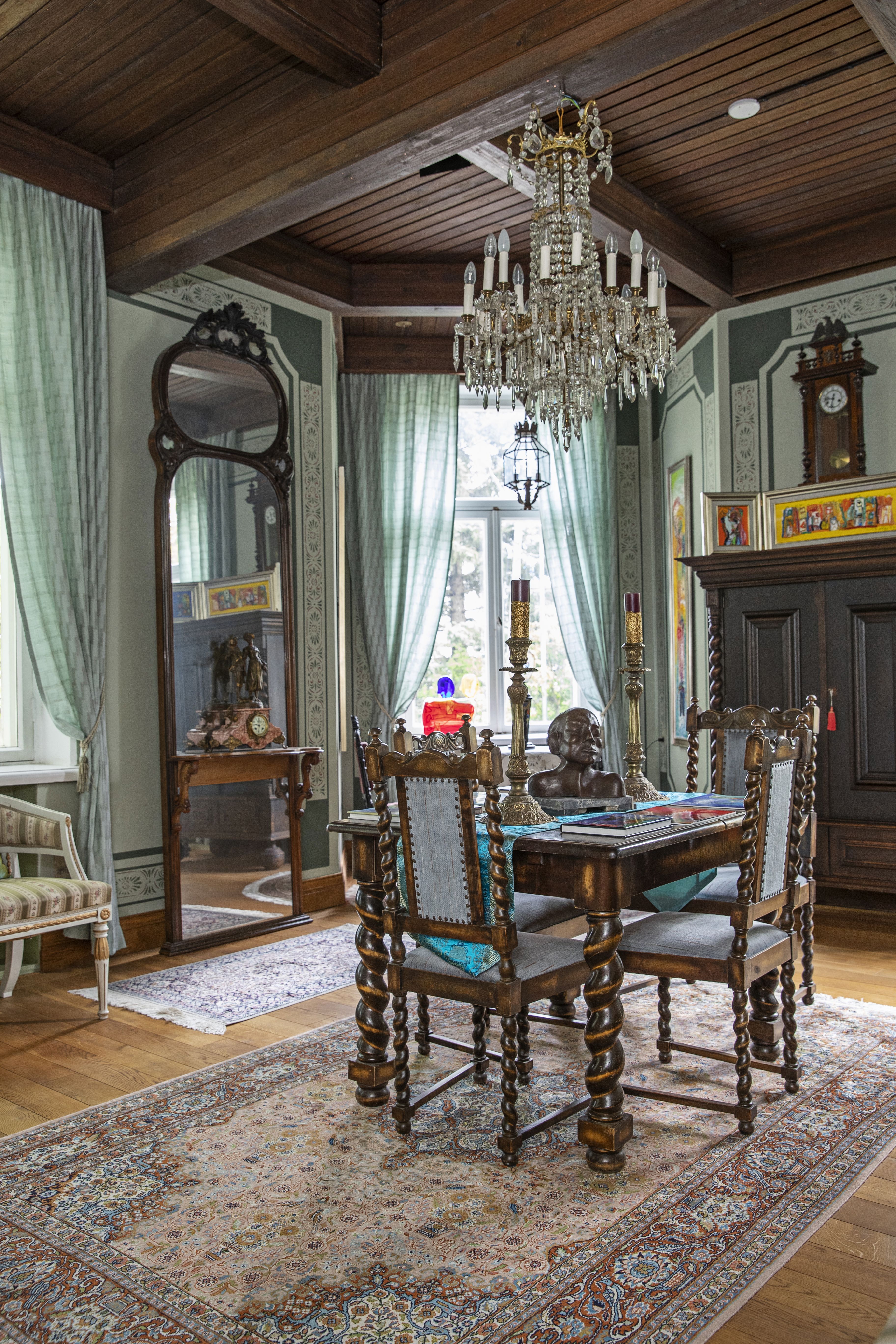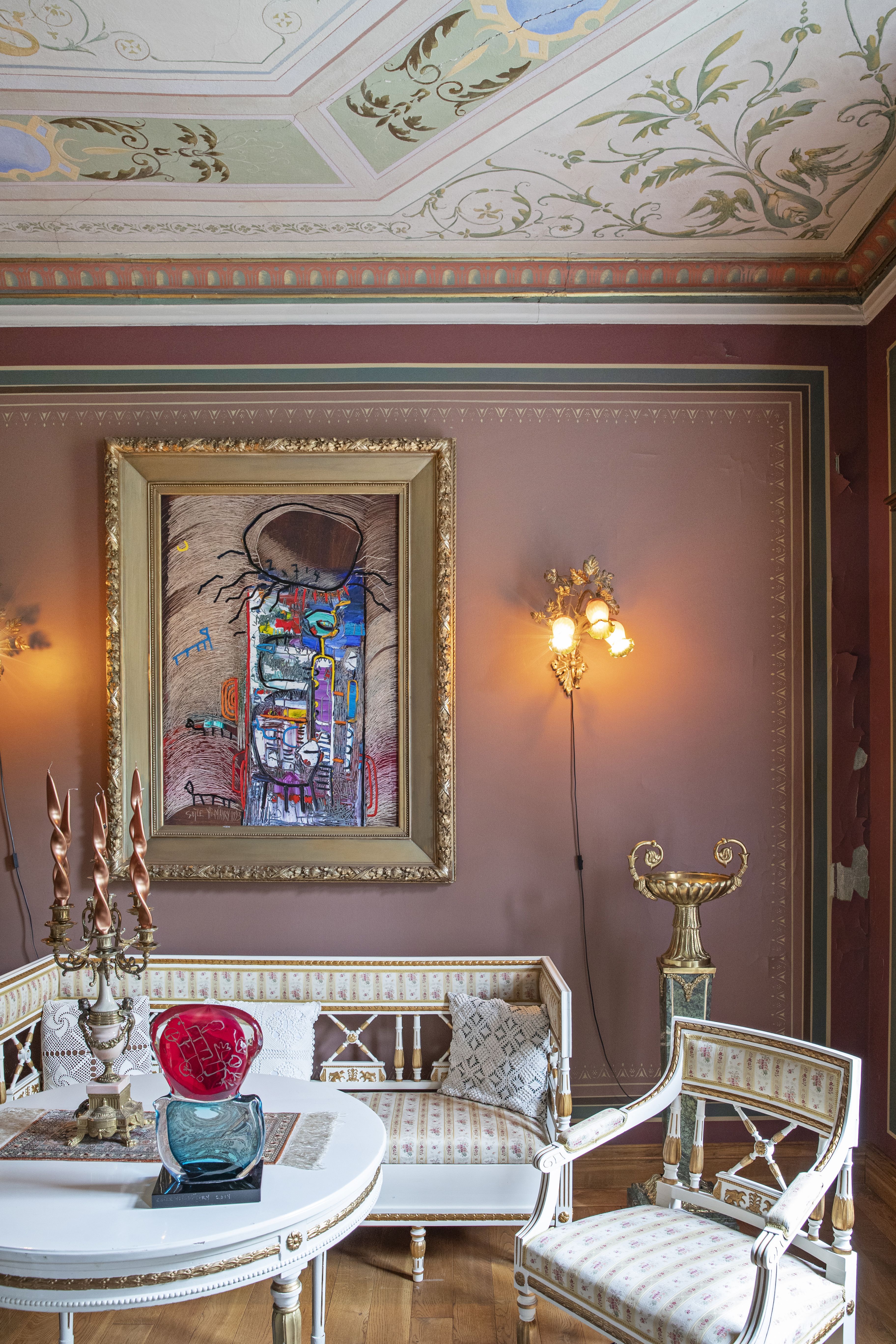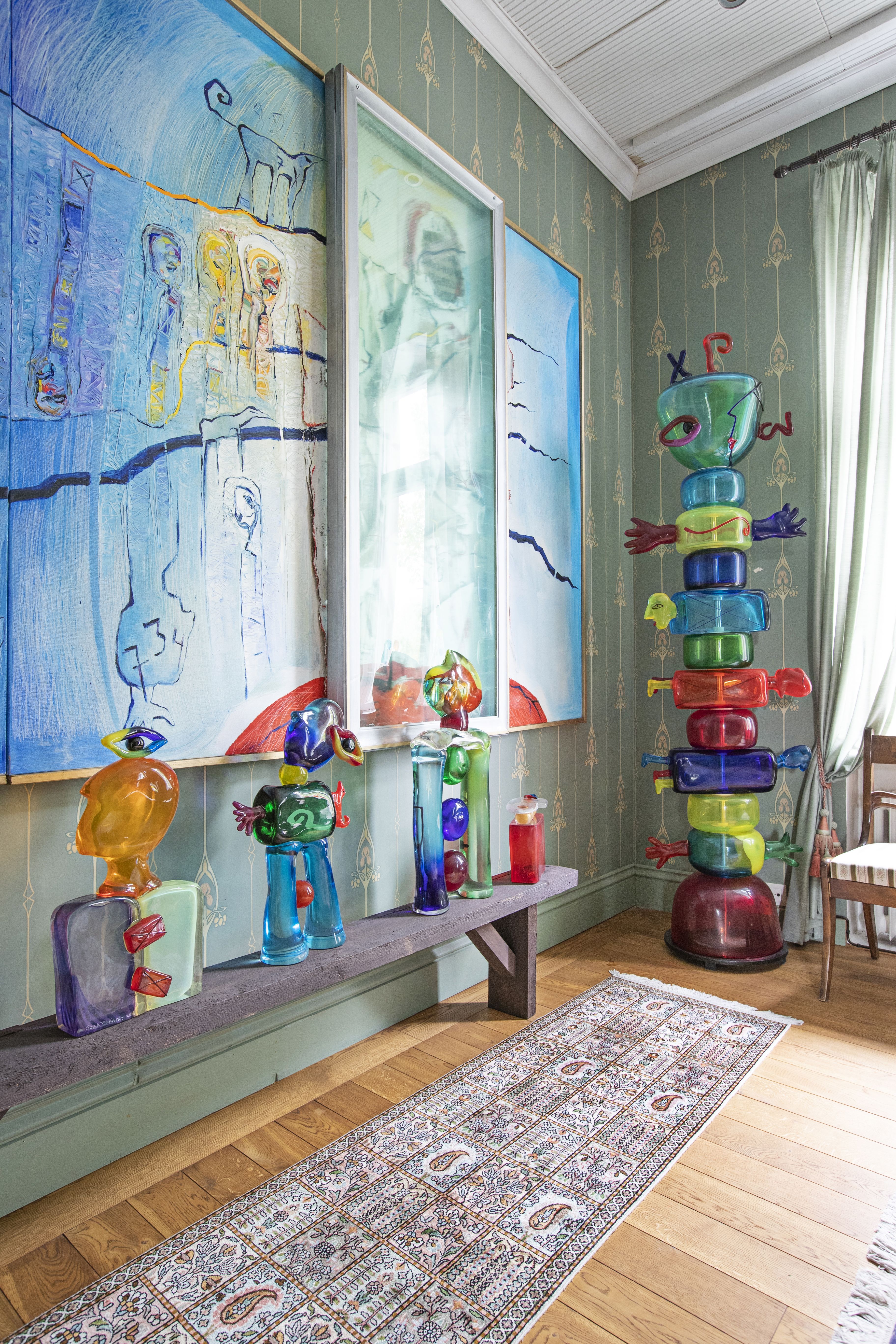 Ostin tämän Orimattilassa sijaitsevan Sellgrenin linnan vuonna 1993, kun Suomen Yhdyspankki halusi päästä siitä laman takia eroon. Rakennus on kirkkoarkkitehti Josef Stenbäckin suunnittelema vuonna 1895, ja aiemmin se toimi paikallisen villatehtaan johtajan kotina. Linna on toiminut myös Särkelä itte -elokuvan kuvauspaikkana. Moderni taiteeni muodostaa kiinnostavan ristiriidan vanhan arkkitehtuurin kanssa – halusin säilyttää tämän jännitteen tietoisesti. Historia on tärkeää, mutta sen voi sytyttää henkiin uudella tavalla. Jokainen linnan omistaja on jättänyt tänne omat jälkensä. Esimerkiksi iso osa esineistöstä on viimeisimmän omistajan, tekstiiliyrittäjä Sellgrenin ajoilta.