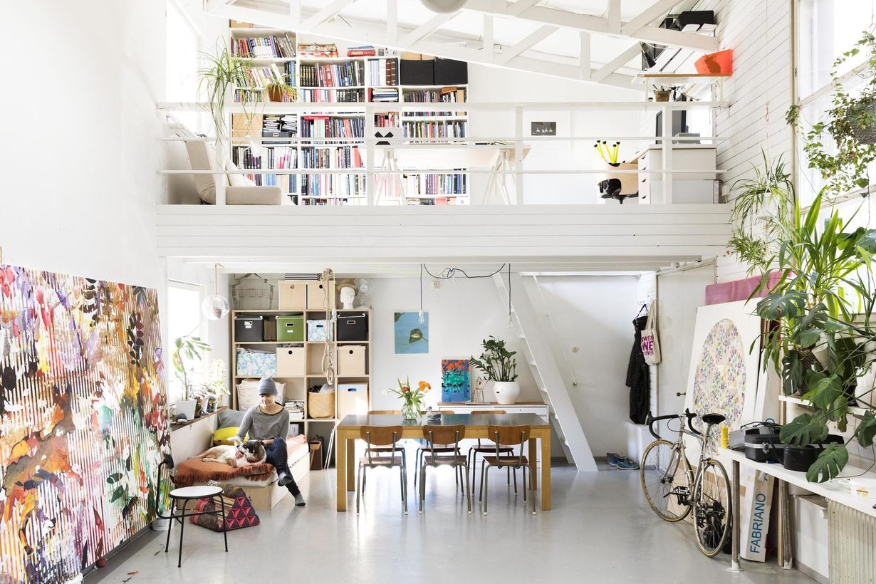 Leena, ateljeesi huonekorkeus on yli viisi metriä. Mikä tilassa on parasta?