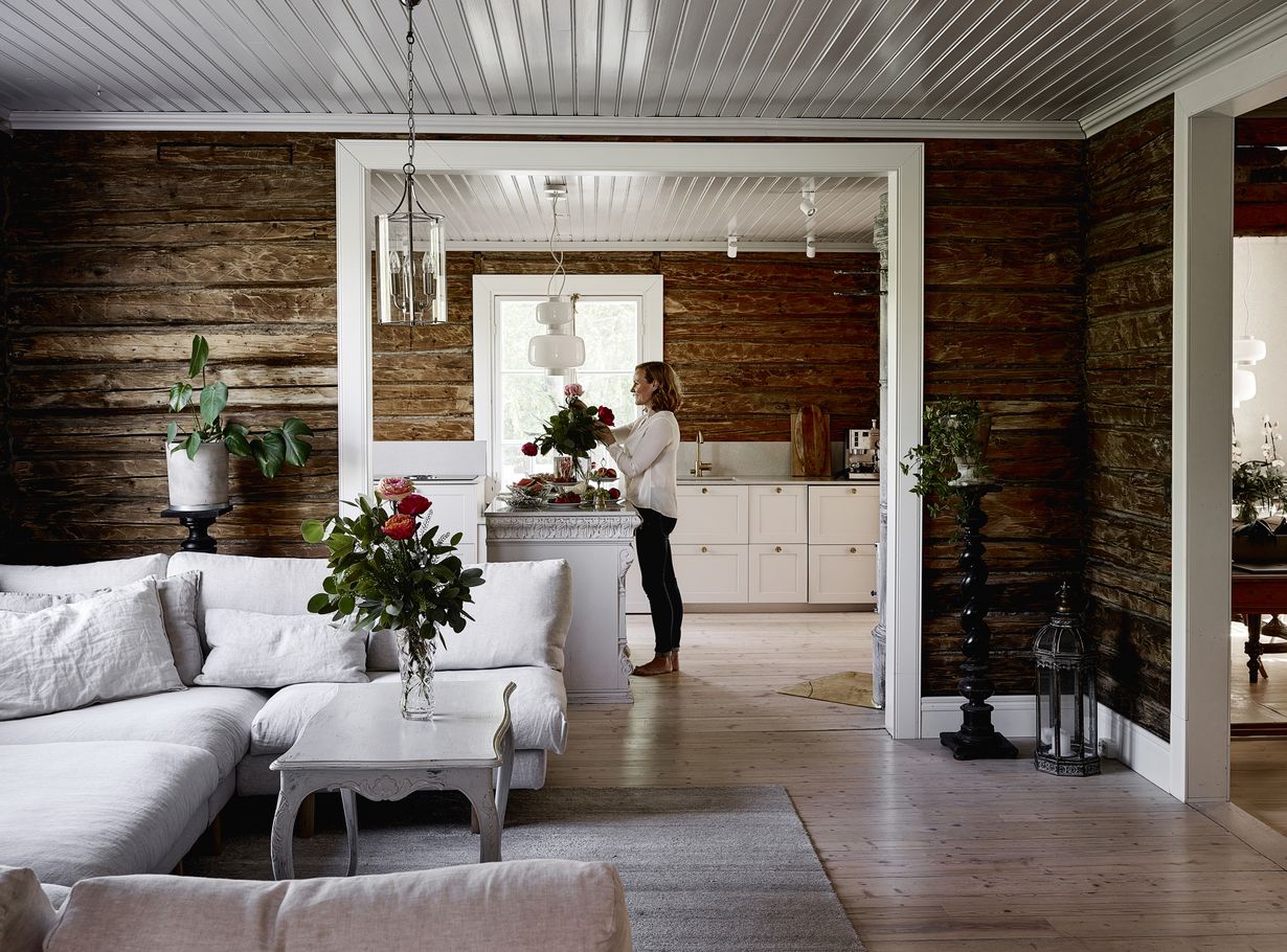Vanhan talon kunnostaminen on elämäntapa. Halusimme kunnioittaa hirsitalon henkeä, saada aidot materiaalit näkyviin, toteuttaa saneerauksen luonnonmateriaalein ja poistaa kaiken modernisoidun. Arvostamme aitoja materiaaleja ja luonnollisia ratkaisuja. Sisustajana suosin kerroksellisuutta - vanhaan taloon sopivat vanhat kalusteet.