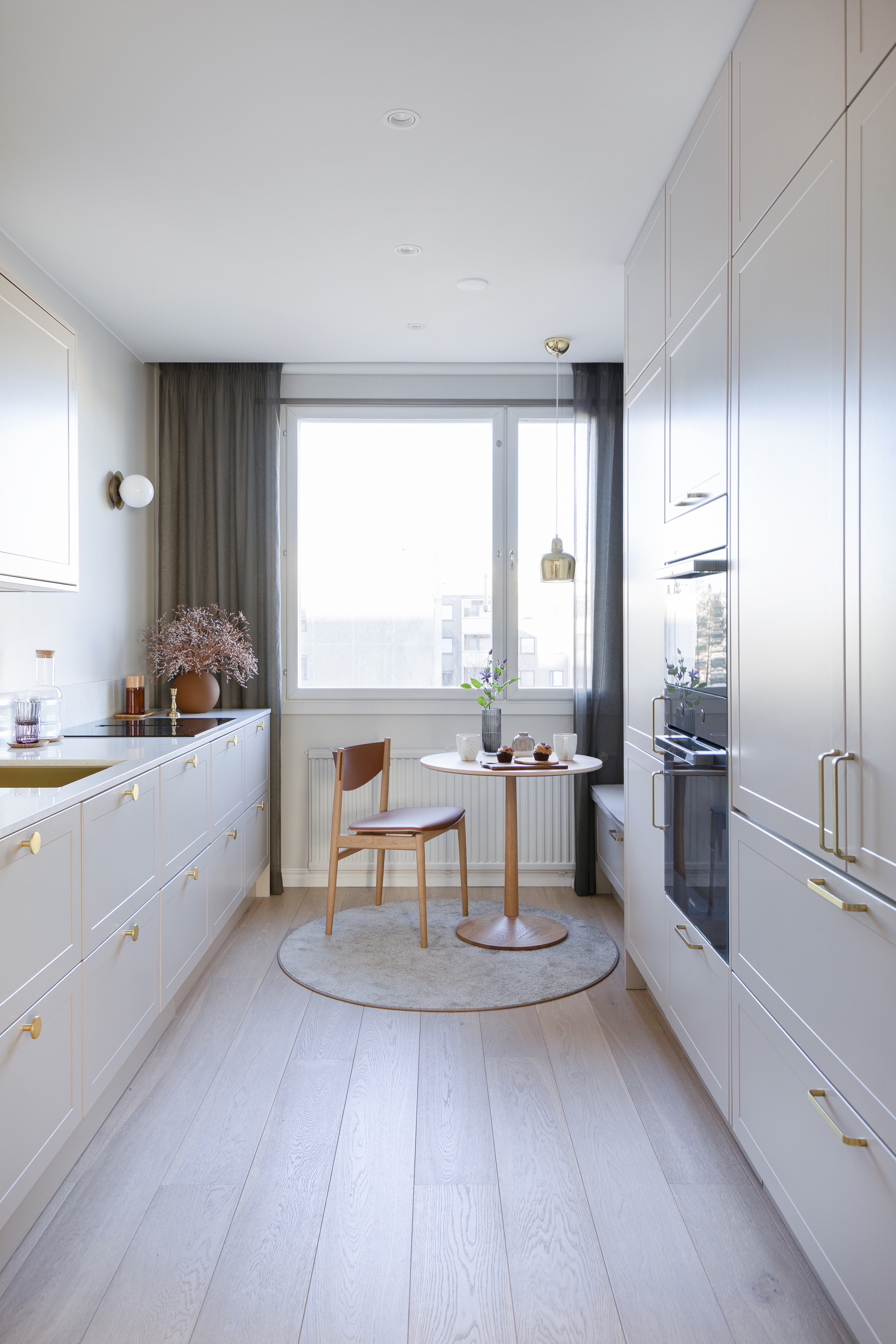 Tamperelaiskodin keittiö sai remontissa rauhallisen ilmeen ja rutkasti säilytystilaa – katso kuvat ennen ja jälkeen