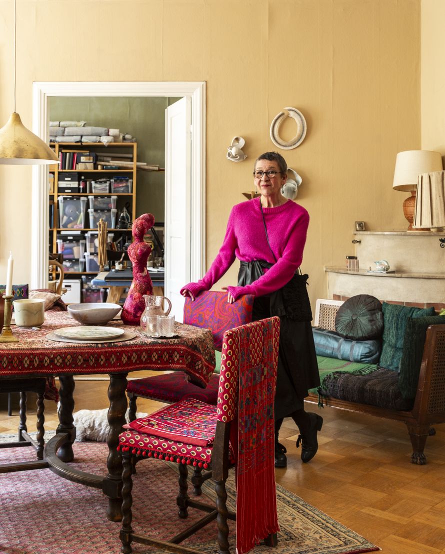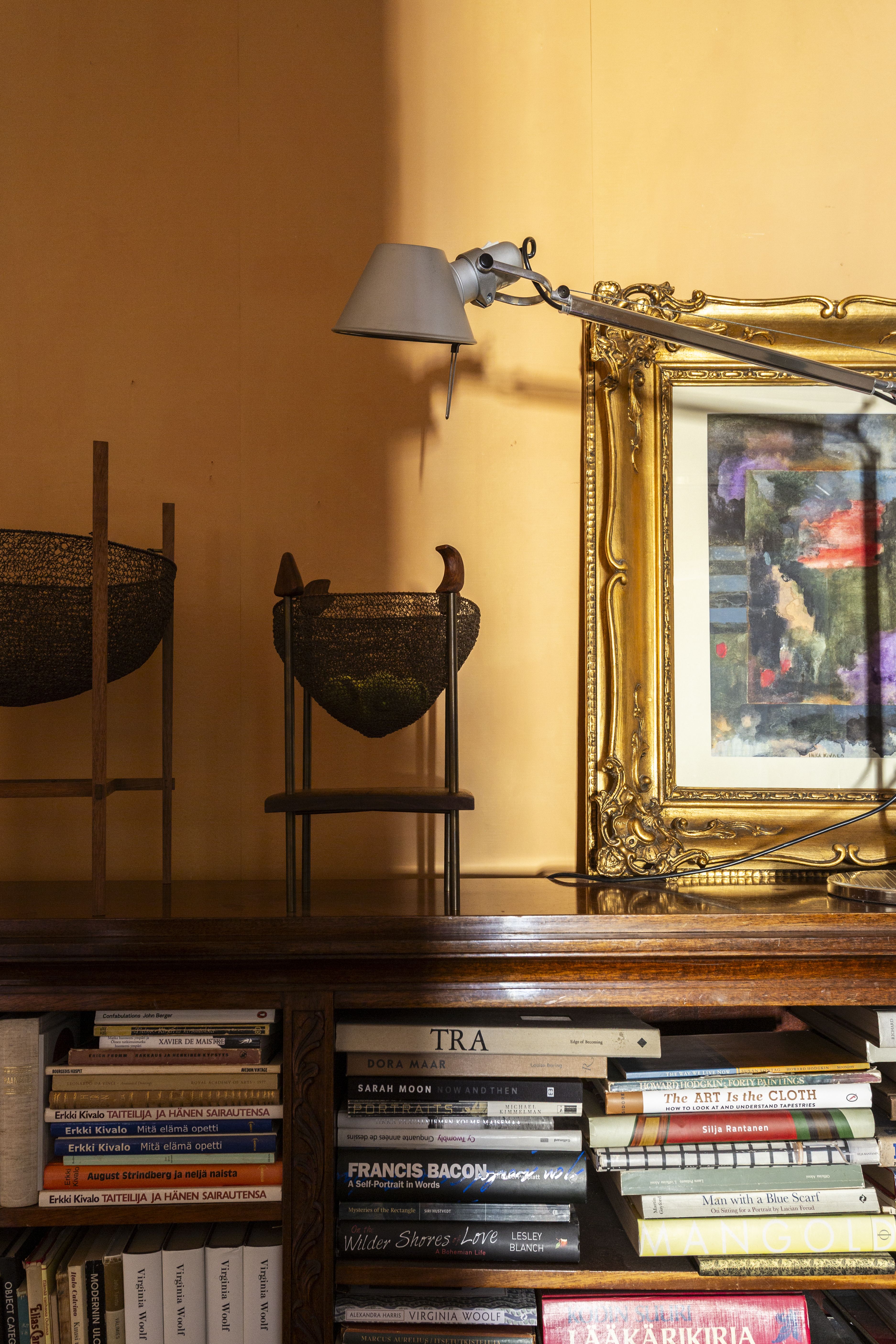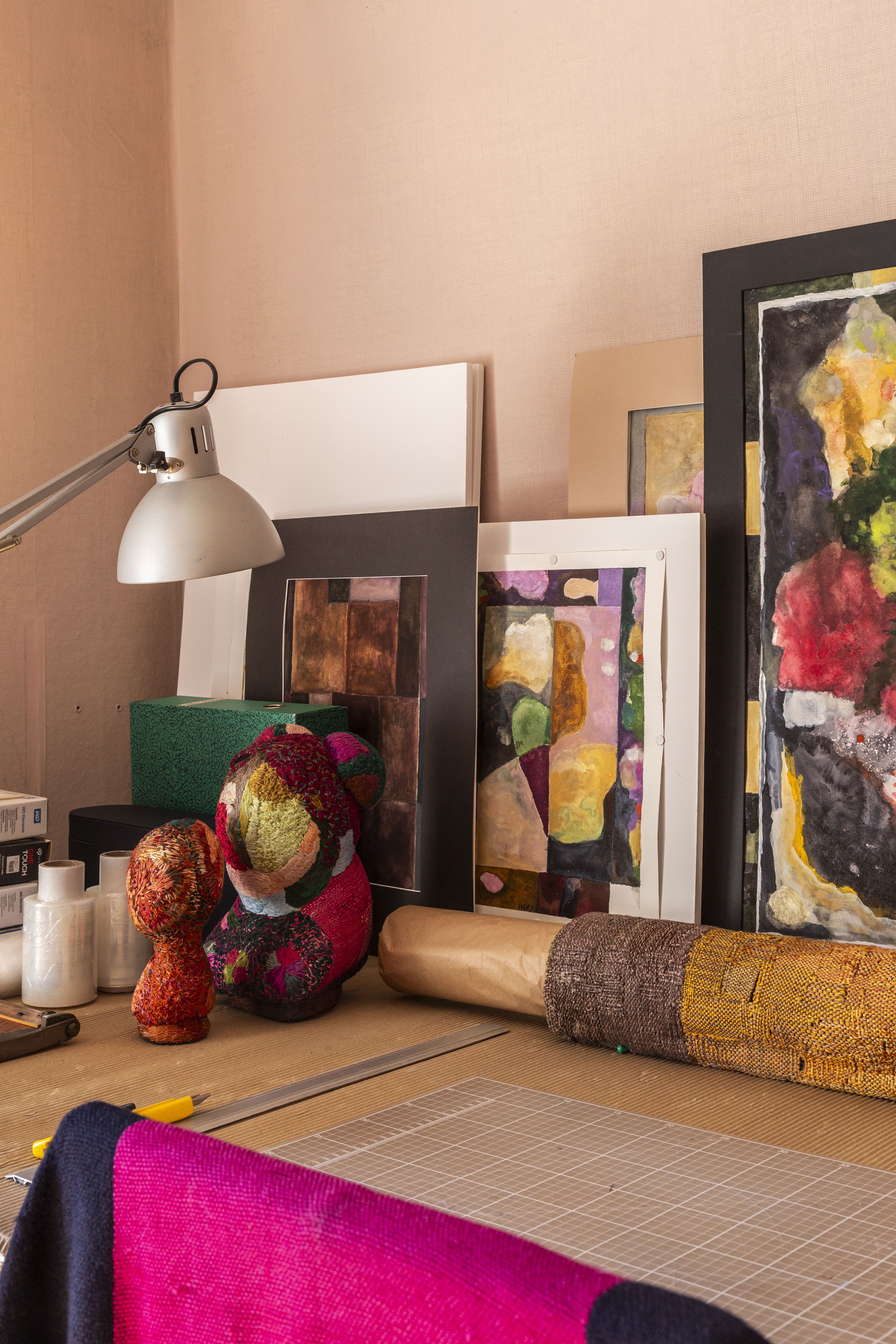 Ilman työtäni meillä näyttäisi aivan toiselta - ja toisin päin, ilman tätä asuntoa teokseni olisivat todennäköisesti toisenlaisia. Työskentelen kotona, ja tässä asunnossa suuret ikiaikaiset pyöröspuut mahtuvat työhuoneeseeni, joten voin kutoa isoja seinägobeliineja. Jos asuisin yksiössä, työskentelisin luultavasti keittiön pöydän ääressä ja tekisin pieniä teoksia.