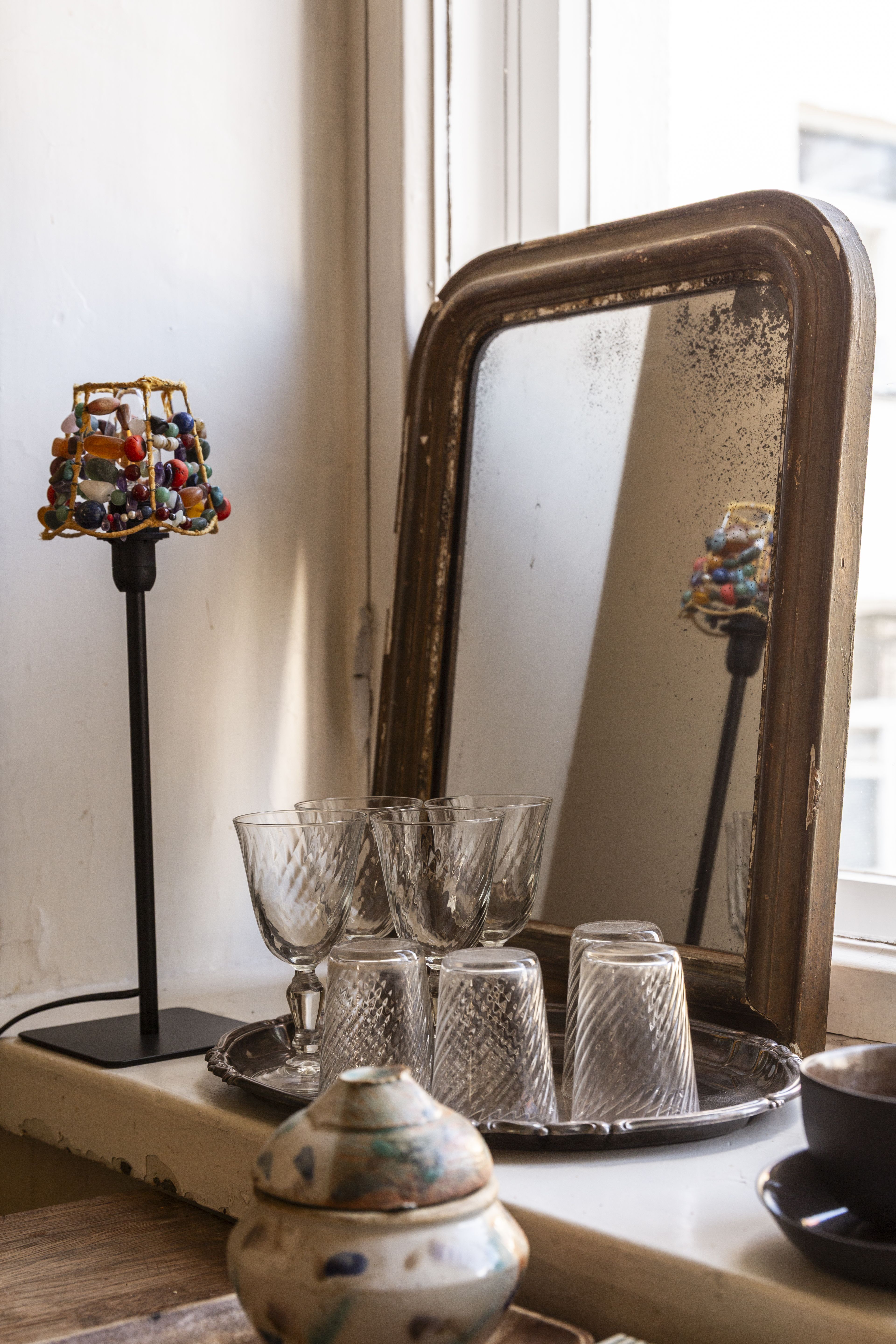 Olen huomannut etsiväni teoksissani mielenkiintoisia yhdistelmiä ja rakennan väri- ja esinerinnastuksia intuitiivisesti myös asuinympäristööni. Toisaalta olen harrastanut kodin tekemistä eli pyörittänyt esineitä ja leikkinyt kotia pienestä pitäen. Koska vietän työni vuoksi paljon aikaa kotona, minulla on mahdollisuus tunnustella ja rakentaa tilaa hitaasti, tunnustella, mikä asia vaatii rinnalleen mitäkin. Ultramoderni näyttää esimerkiksi kiinnostavalta talonpoikaisantiikin rinnalla.